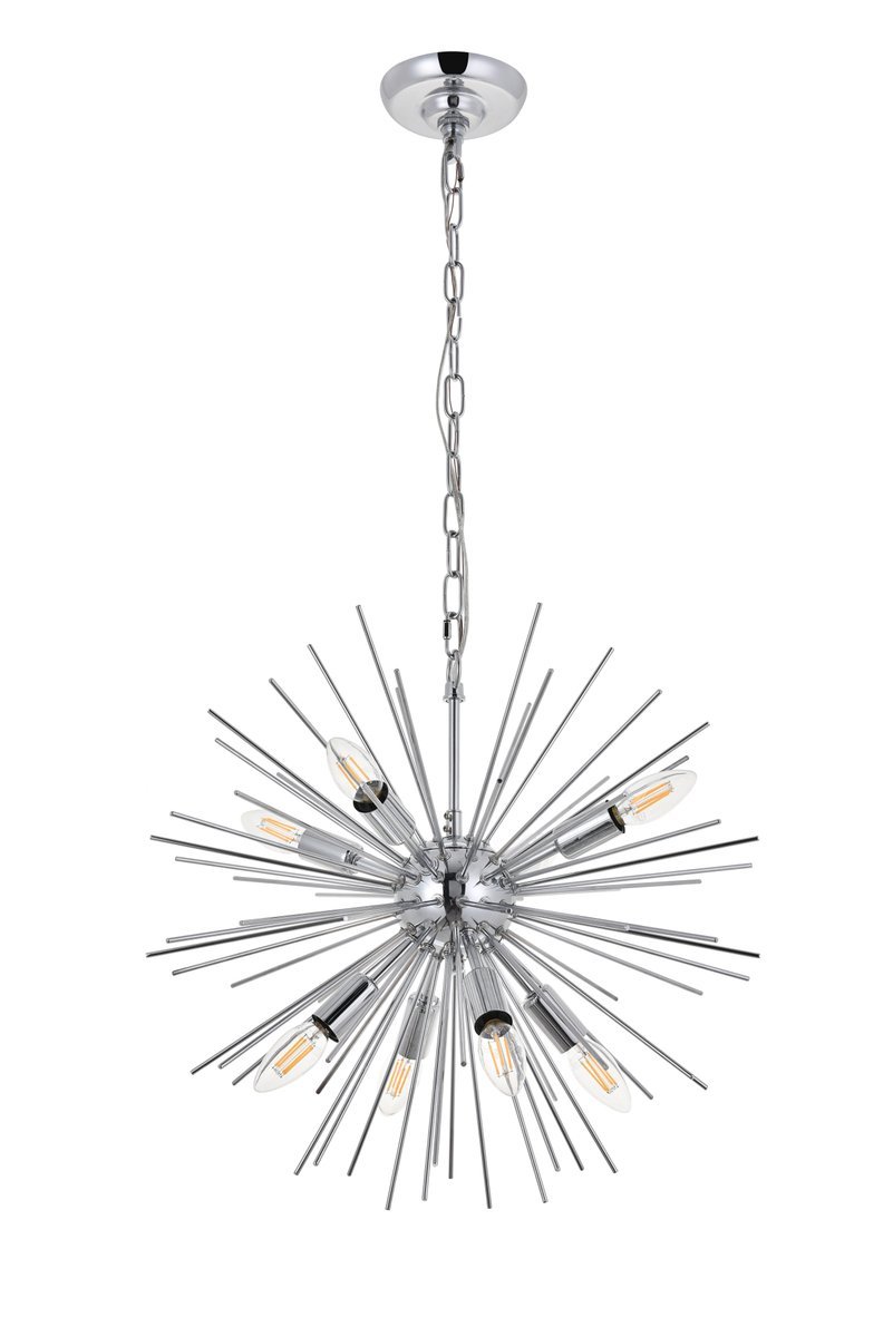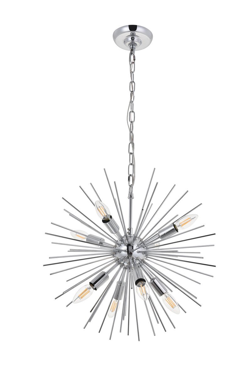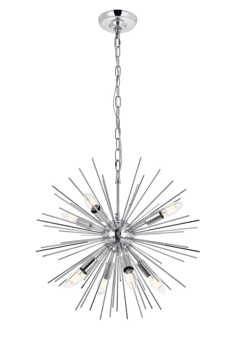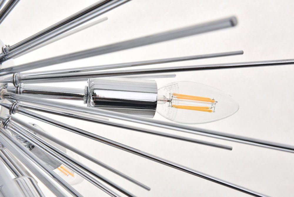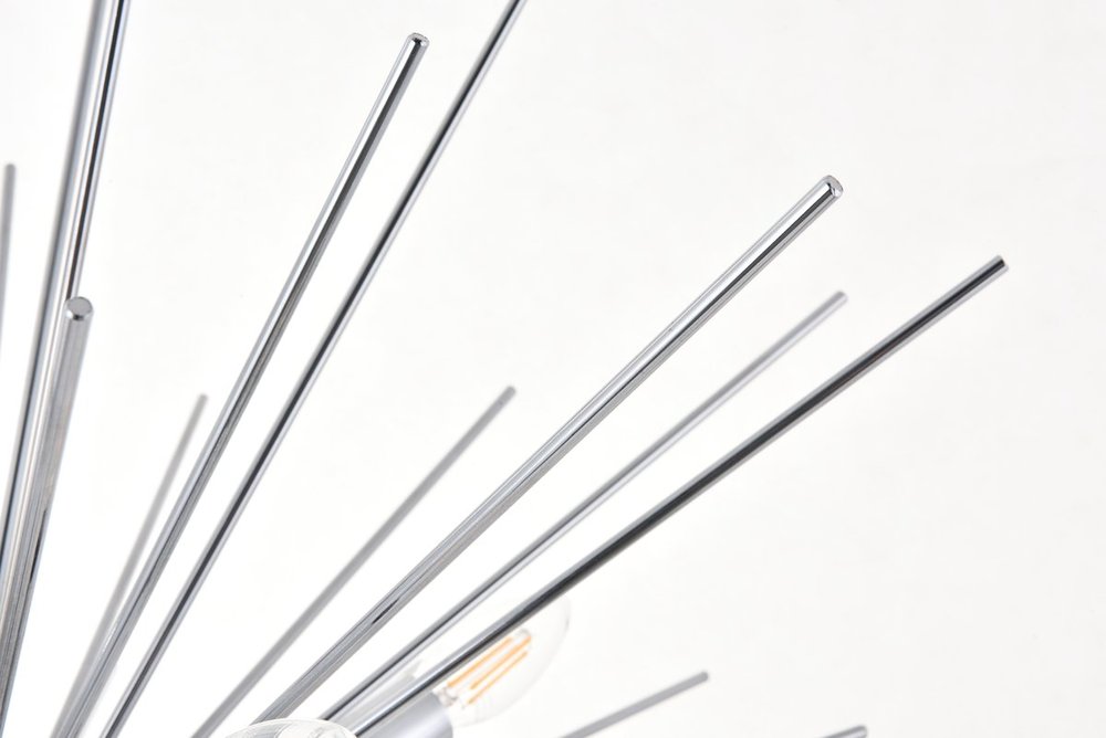 Chrome finish pendant with 8 lights and a myriad of chrome finish rods extending from center