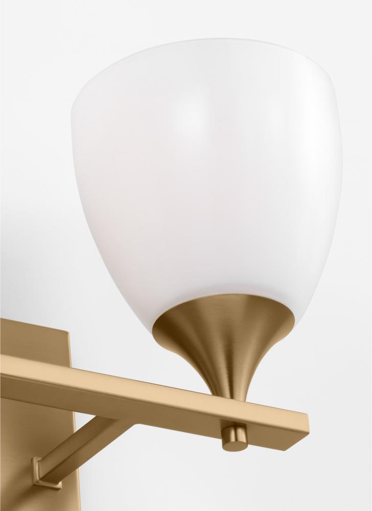 Made to coordinate across a broader range of bath hardware and design styles, this light breathes new life to its traditional shape with milk glass shades and striking, modern finishes