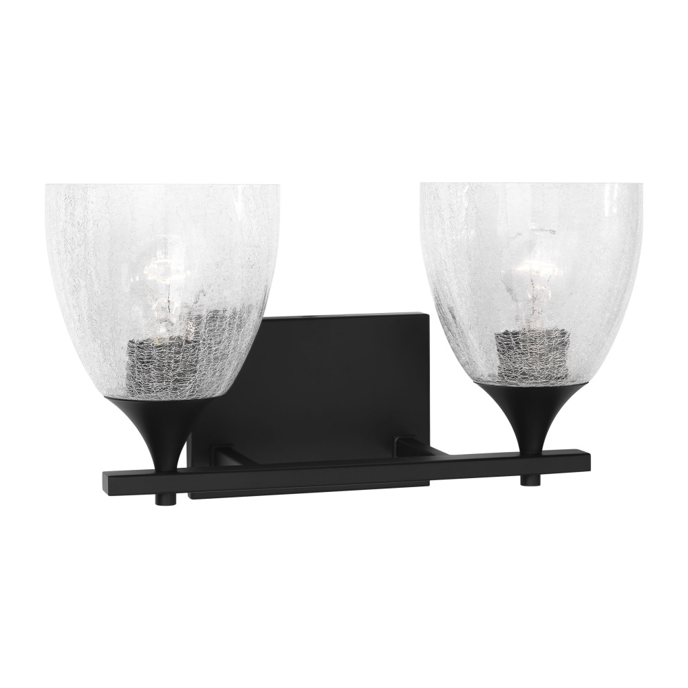 Crafted with Steel in a Midnight Black finish with clear crackle glass shades