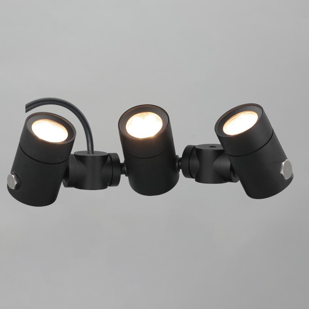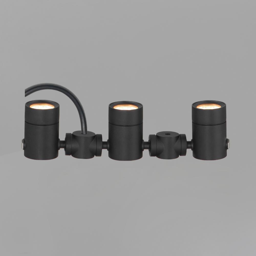 LED spot light modules are connected with rotating joints designed to strap along vegetation and posts. Available in groupings of three, five, and eight, each section is supplied with a fabric strap to easily wrap the products around various structures. Th