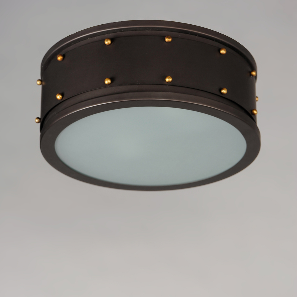 Elevate the industrial with meticulously crafted metal spun shades in Oil Rubbed Bronze with Antique Brass rivet details on matte black straps and brass hook suspension system. Light emits from both the top and bottom of the pendants as well as reveals spa