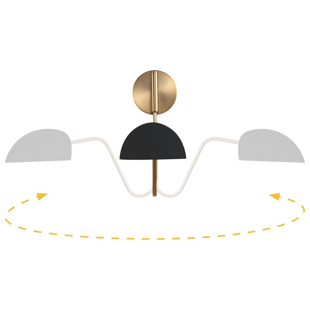 The Trilby wall light features an adjustable swing arm and a versatile finish and is perfect for a reading nook or office area. The half-bowl shade is matte black. The reflective interior lining is ideal for maximizing light output. With a burnished brass