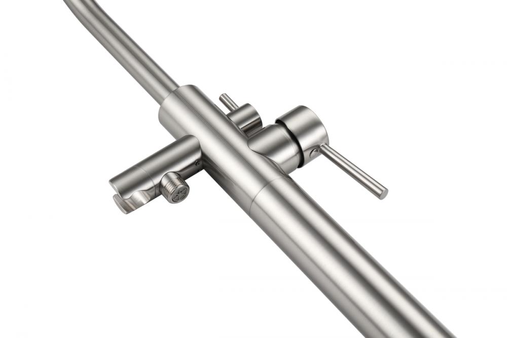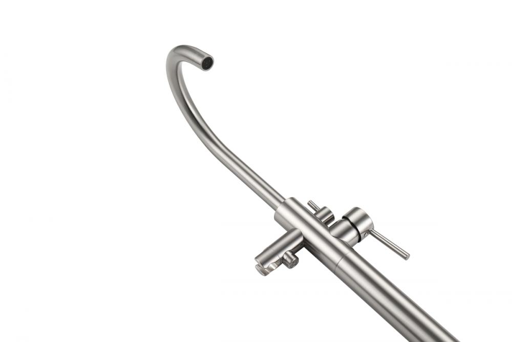 Our floor-mounted bathtub faucet brings a touch of space-saving elegance to your bathroom.