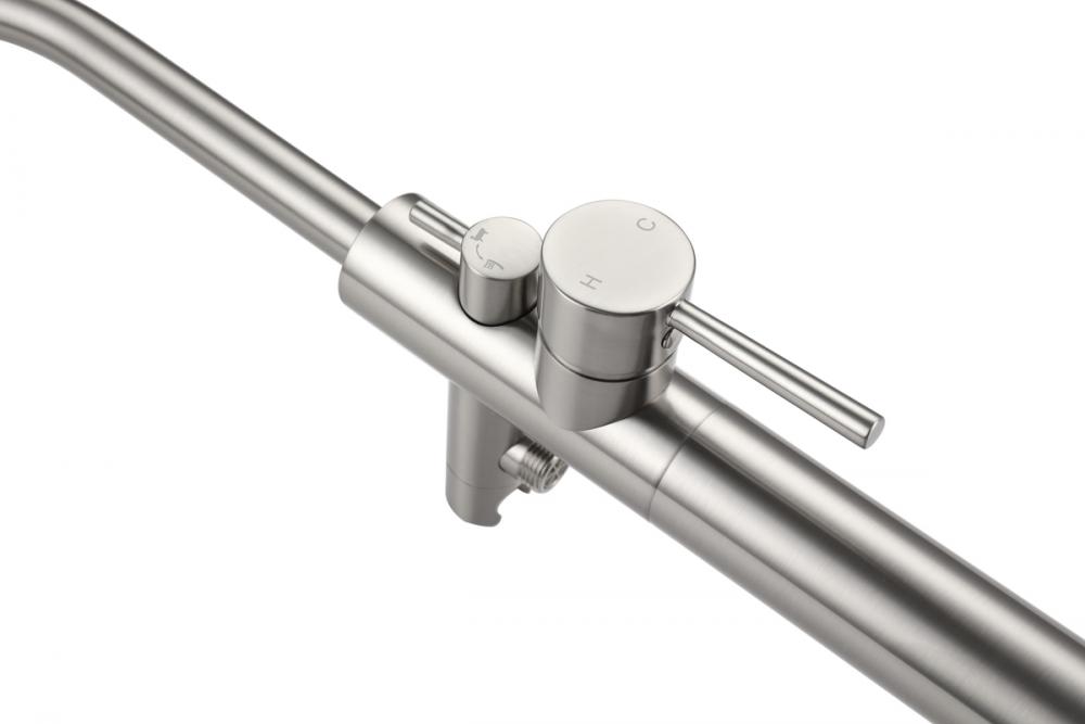 The faucet features a handy diverter lever, allowing you to effortlessly switch between the faucet and the hand shower. Customize your bathing experience at your convenience.