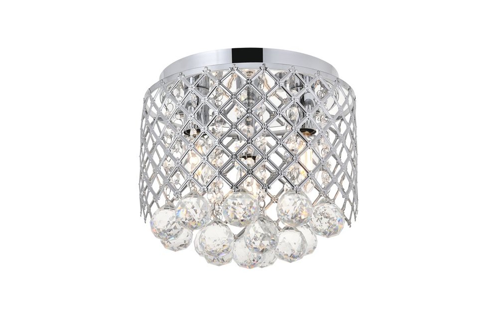 Enjoy the shimmering beauty of the Tully flush mount in a chrome finish. The elegant lattice metal curtain allows for the hanging crystals to play and dance around the illuminating light, with larger crystals at the base peeking out to say hello. Lights on or off, this flush mount will surely make quite a statement in your home!