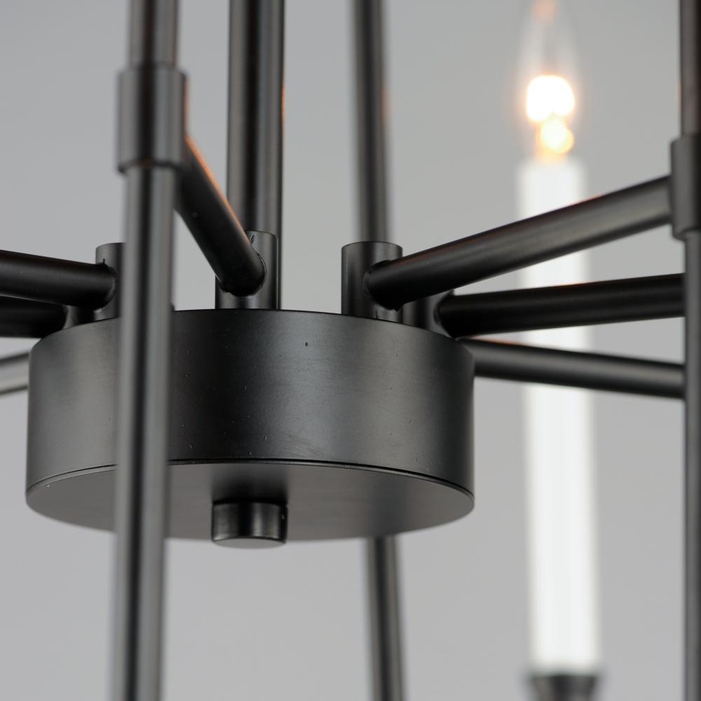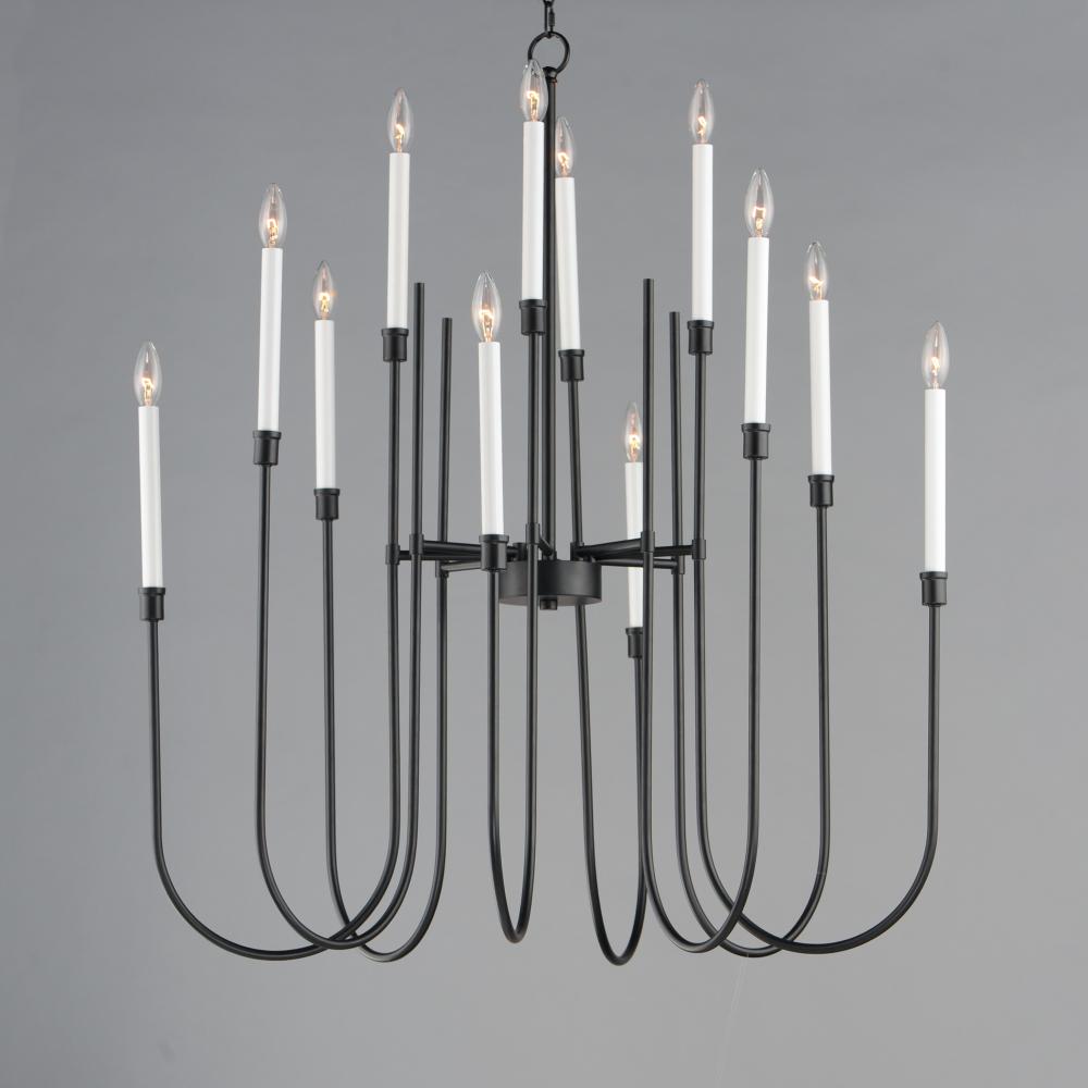 Updating the traditional chandelier form, the Tux collection uses elongated sweeping lines evocative of the mid-20th century and stripped down ornamentation to create a transitional lighting product relevant again. The two-tone Black and White powder coate