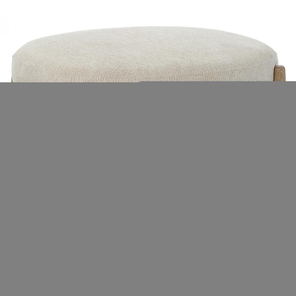 Taking Cues From Scandinavian Design Elements, This Small Bench Features A Solid Oak Base in A Natural Finish with Off White Glazing Accented By A Plush Seat Wrapped in A Channeled Textured Off-white Polyester Fabric.