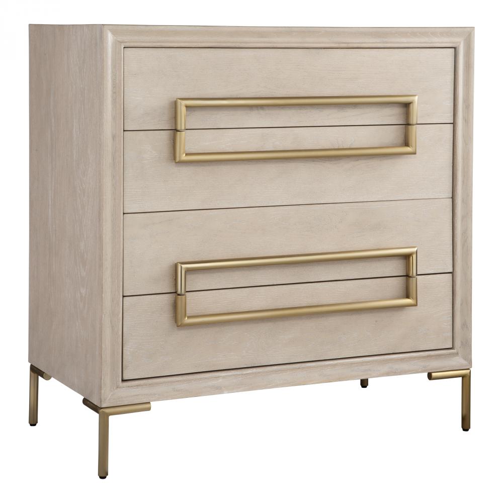 Showcasing A Fresh Contemporary Look Alessia Exhibits A Light Oak Veneer Adding A Touch Of Brightness To Any Room. Its Stylish Appeal Is Elevated With The Brushed Brass Plated Stainless Steel Hardware And Legs, With Four Soft Closing Drawers.