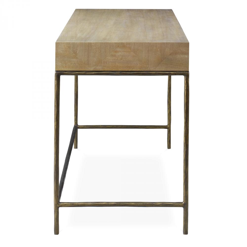 The Aristotle Desk Provides Any Room With A Clean-lined Contemporary Work-space. Finished In A Vibrant Primavera Wood Veneer With A Natural Finish And A Sturdy Antique Gold Cast Iron Base, This Desk Is The Perfect Blend Of Warm And Rugged Sophistication. Features One Center Storage Drawer.