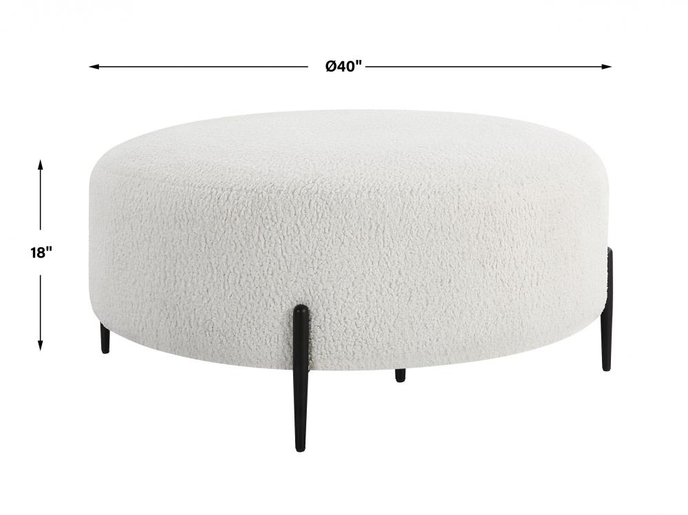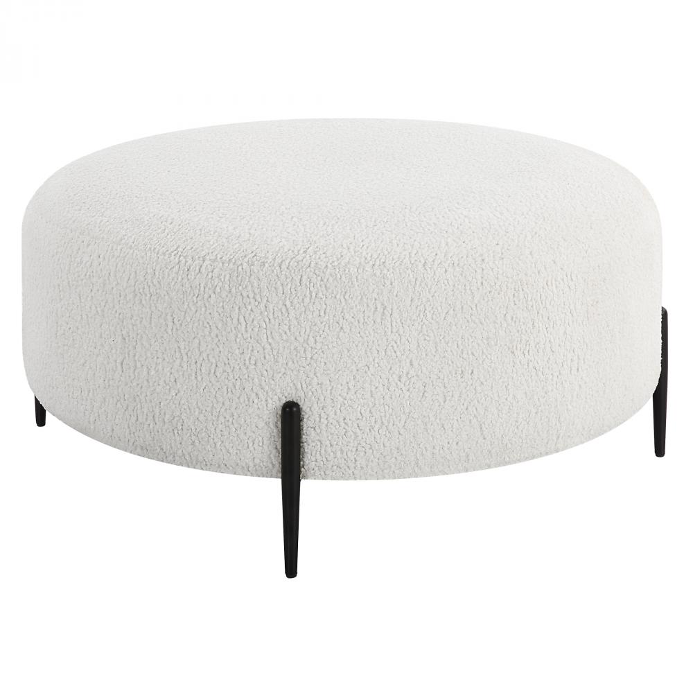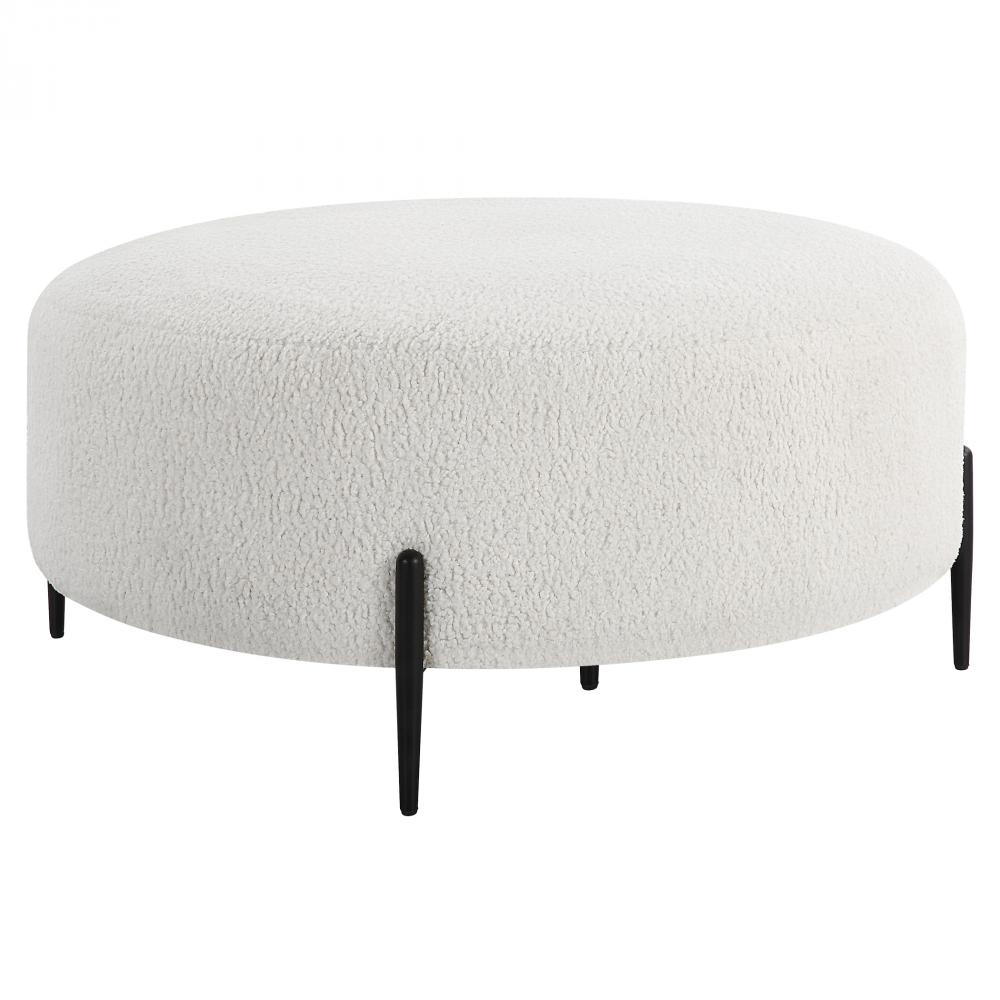 This Plush Ottoman is Covered in A Luxurious White Faux Shearling, Suspended Within Satin Black Finished Metal Legs. Perfect As A Coffee Table Styled with A Tray.