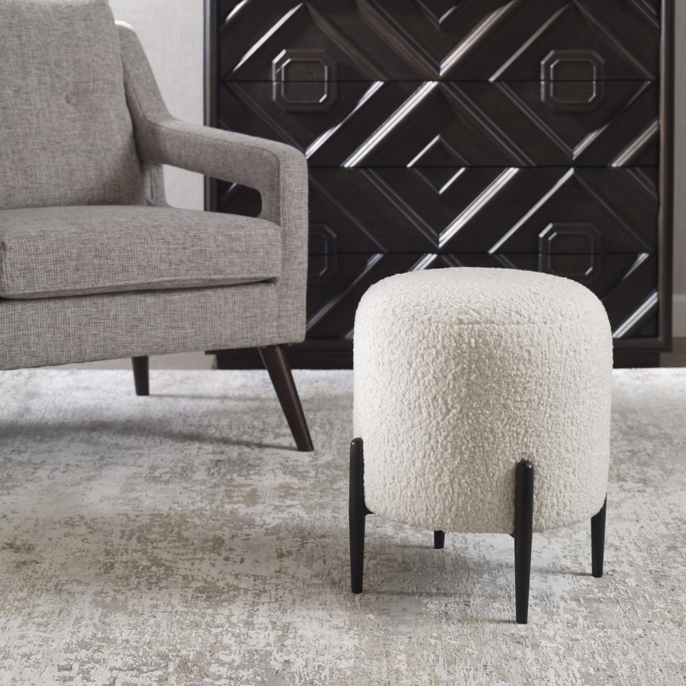 This Plush Ottoman is Covered in A Luxurious White Faux Shearling, Suspended Within Satin Black Finished Metal Legs. Versatile and Stylish, This Piece Can Be Used As A Seat or Footrest, Grouped Together or As A Singular Accent Piece.