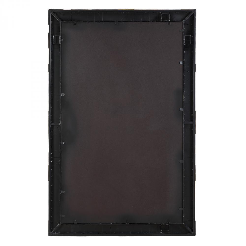 The Bustelo Mirror Showcases A Striking Geometric, Layered Metal Frame, Enhanced By A Heavily Distressed Dark Bronze Finish With Antique Gold Undertones, Adding Depth And Texture To Any Room. May Be Hung Horizontal Or Vertical.