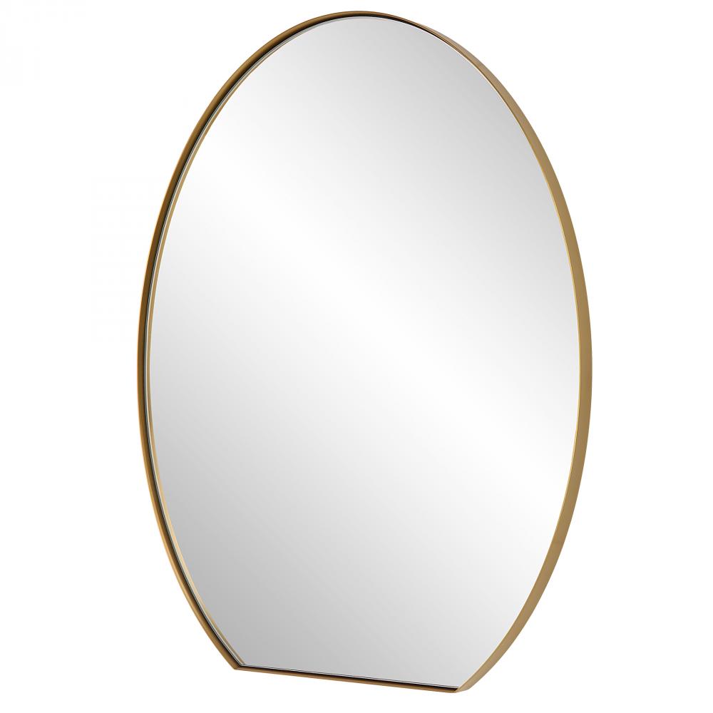 This Sleek Oval Mirror Features A Plated Brushed Brass Finish Over A Stainless Steel Frame That Surrounds A Floating Polished Edge Mirror.