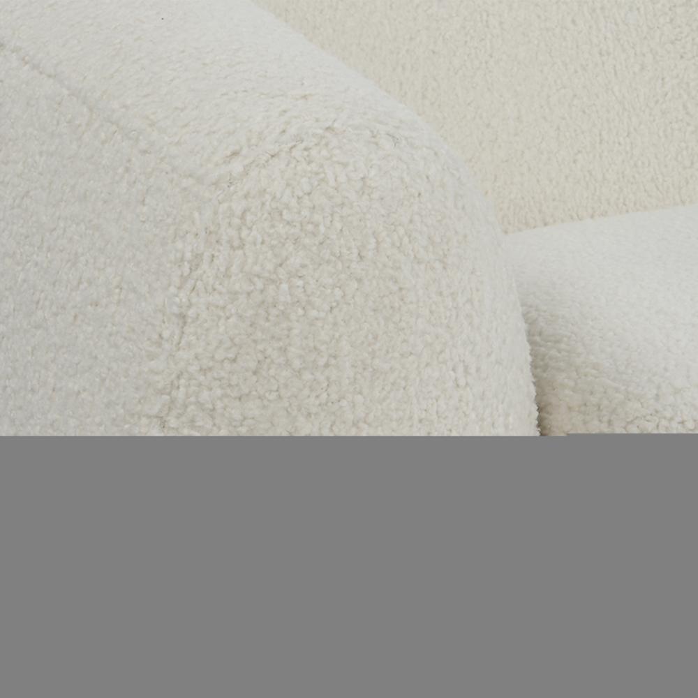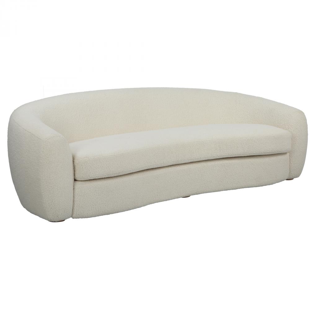 The Capra Sofa Draws Inspiration From Old Hollywood Glamour and The Art Deco Movement with A Contemporary Twist. The Curved Silhouette Maximizes Style and Comfort with Luxe Off White Faux Shearling. Rounded Bun Feet Are Finished in Natural Oak. Seat Height is 19".