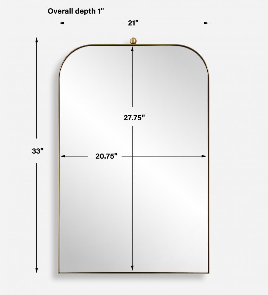 Encased In A Sleek Stainless Steel Frame, This Vanity Arch Mirror Features A Lustrous Brass Plated Finish, Elegantly Surrounding A Floating Polished-edge Mirror And Topped With A Classic Ball Finial.