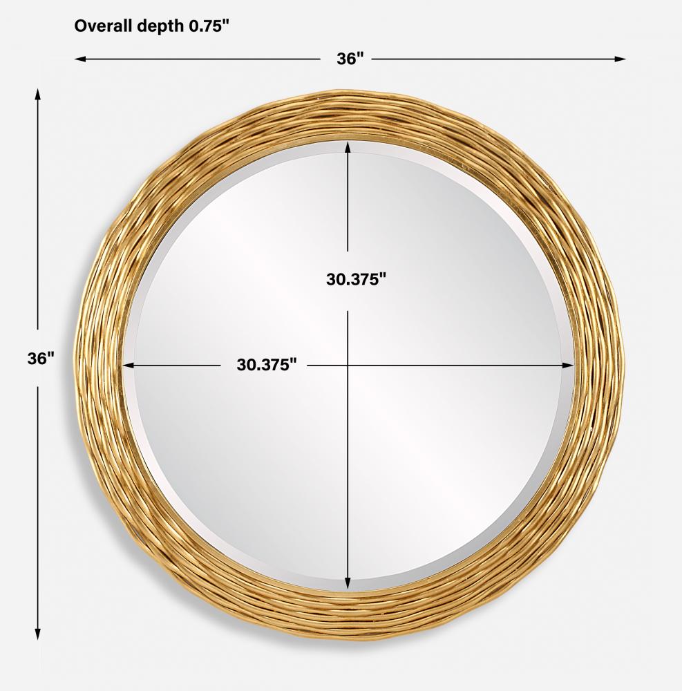 Our Celeste Round Mirror Is Crafted With Layered Iron Rods Meticulously Hand-forged To Create A Graceful, Alternating Wavy Texture. This Unique Design Exudes A Soft Yet Industrial Elegance, Finished In A Lightly Antiqued Gold Leaf. Mirror Has A Generous 1 1/4" Bevel.