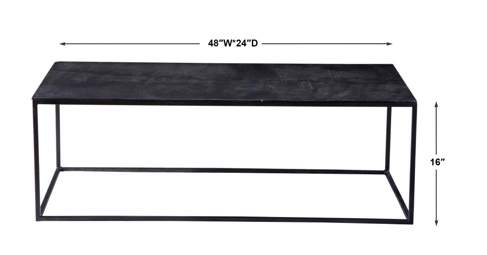 Simplistic Industrial Style Console Table, Constructed in An Aged Black Iron Featuring A Cast Textured Aluminum Slab Top Finished in A Plated Antique Bronze.