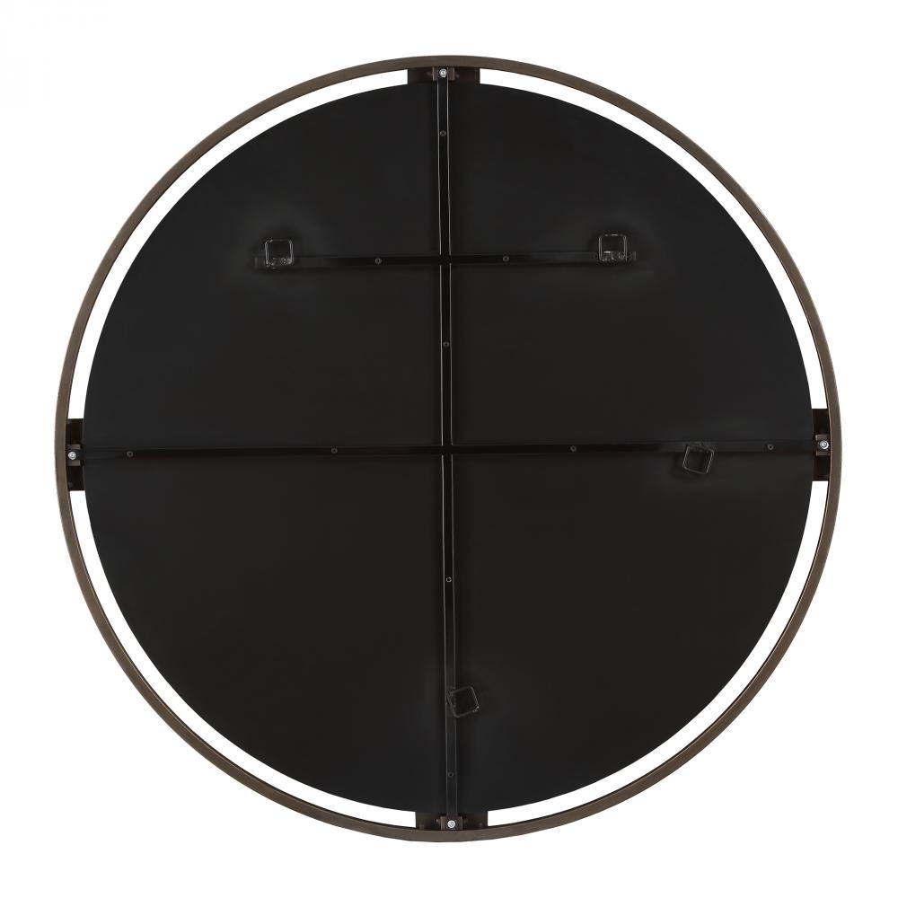 This Round Mirror Is Crafted With A Hefty Dark Bronze Iron Frame, Adorned With Matching Bands That Suspend A Polished Edge Mirror For A Look That Exudes A Timeless Charm That Complements Any Decor Style.