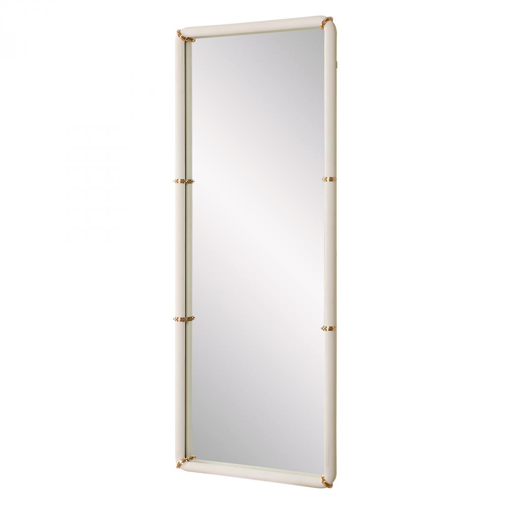 The Cyprus Dressing Mirror Showcases A White Faux Shagreen Leather Wrap Featuring Brass Plated Steel Bands That Help Elevate This Sophisticated Design. May Be Hung Horizontal Or Vertical.