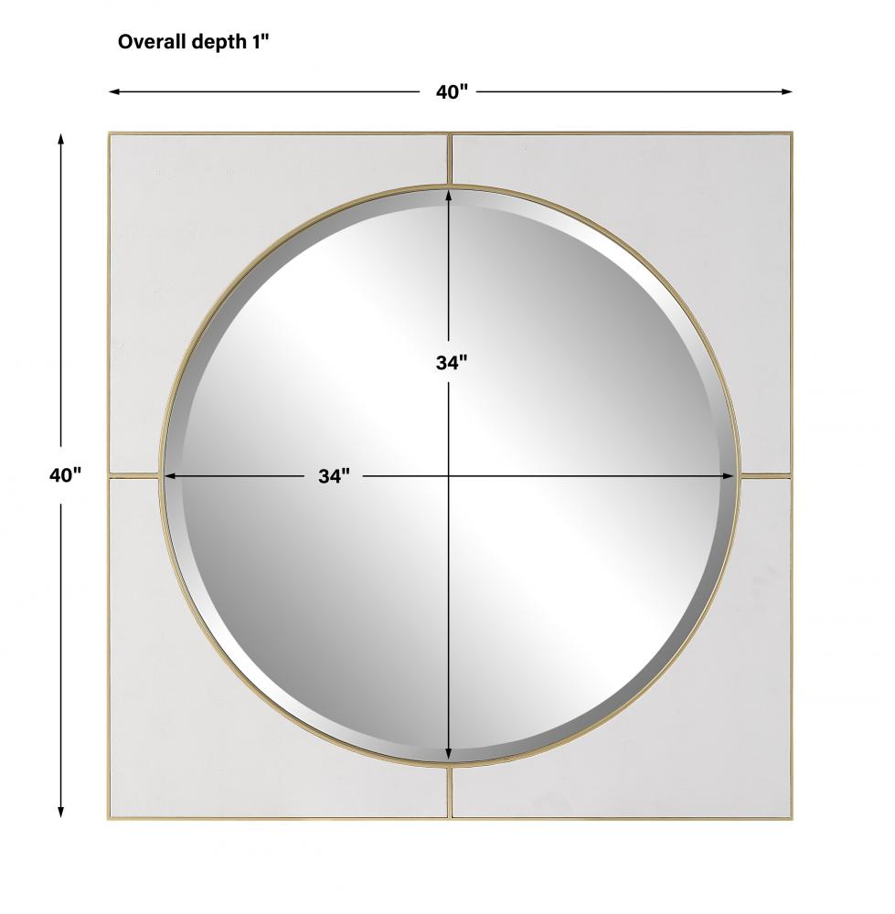 Classic and Sophisticated, This Mirror Features A White Faux Shagreen Leather Surrounded By Delicate Soft Gold Detailing. The Piece Features A 1" Bevel.