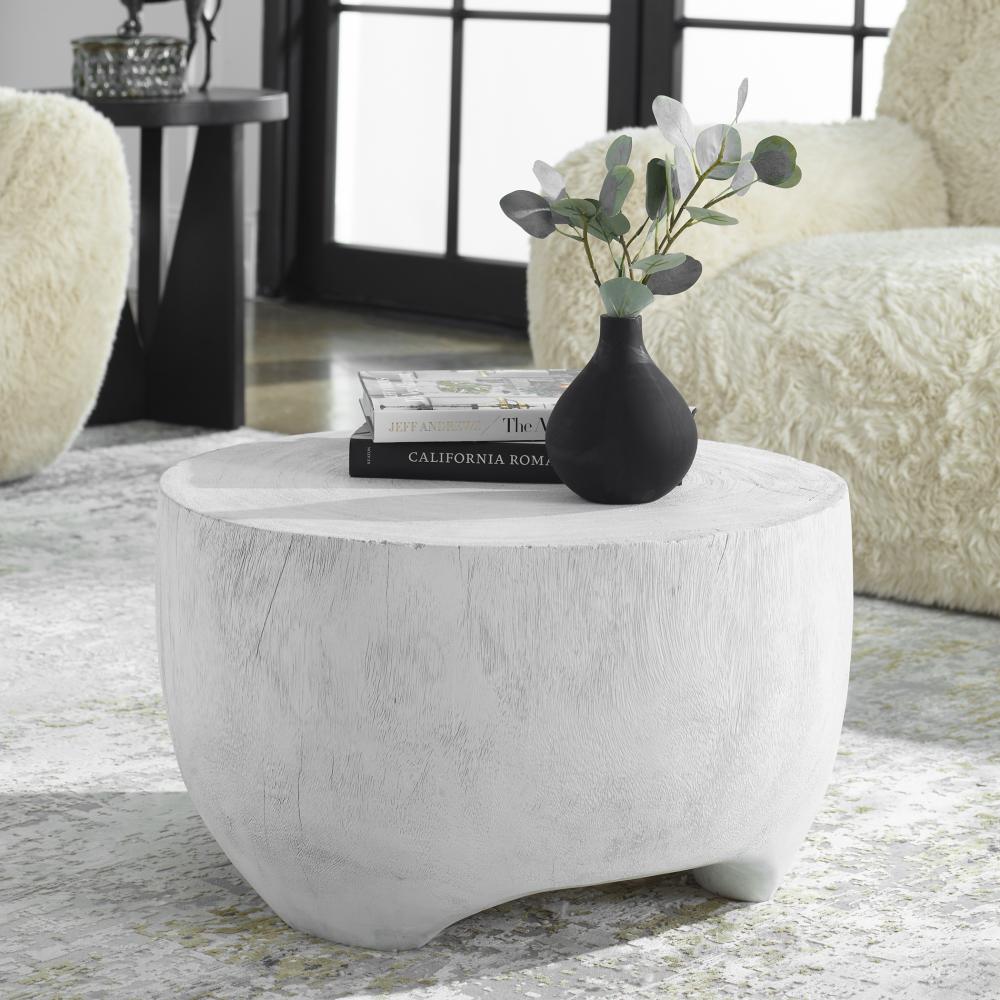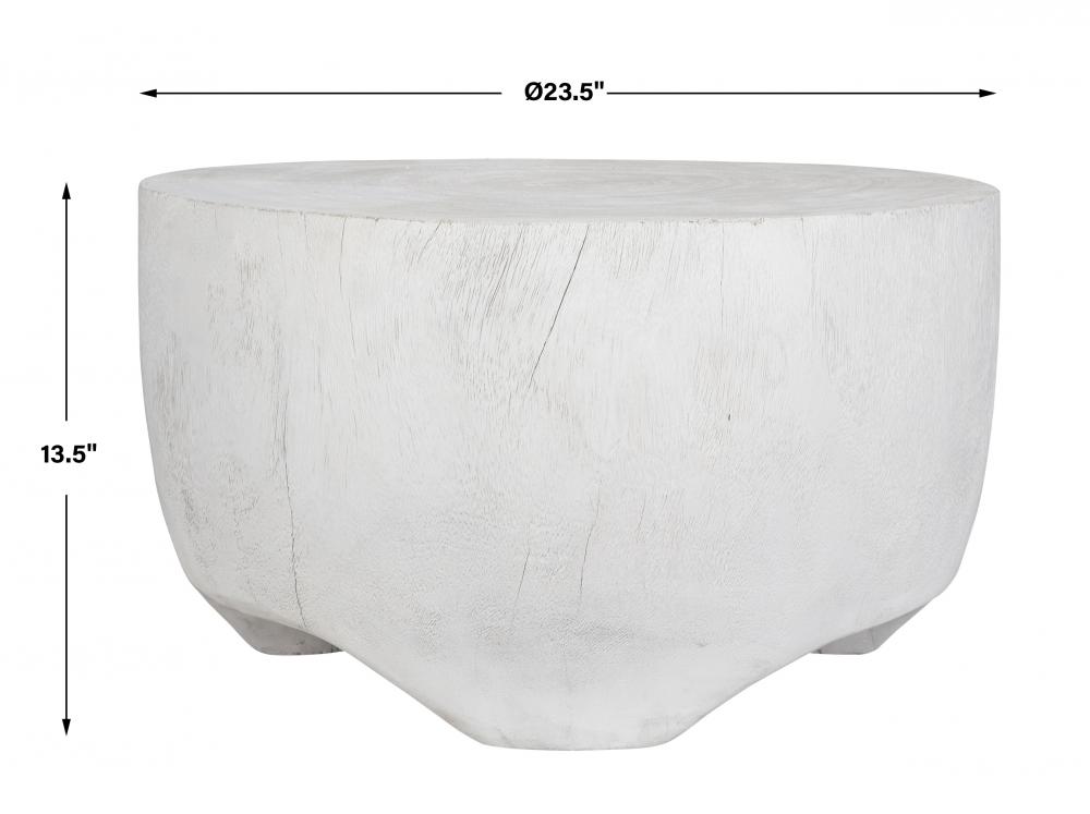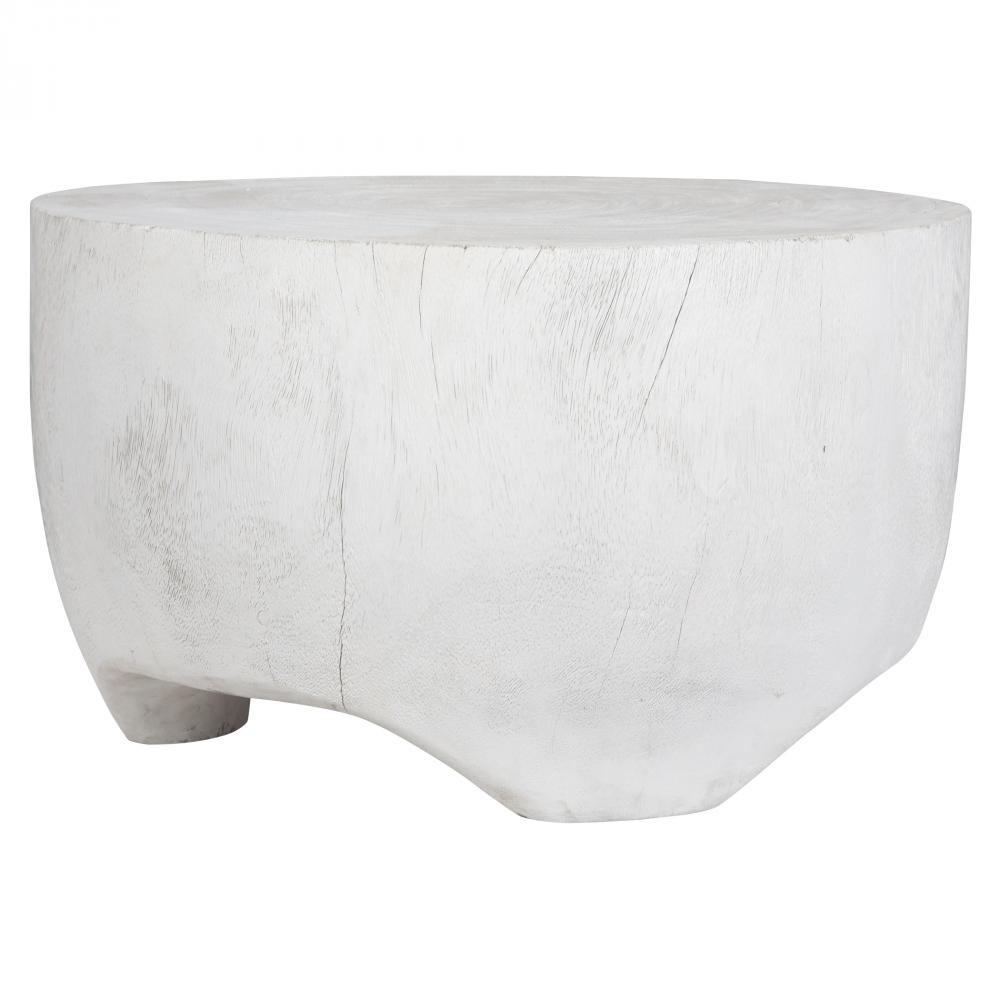 Hand Carved Suar Wood is Scooped to Create Levitate Coffee Table. Finished in A Matte White Highlighting The Natural Textured Grain. Cracks and Variations in The Grain Are Natural to This Type of Wood.