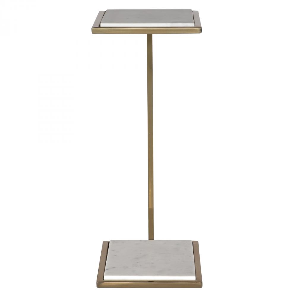 The Elevate Drink Table is Ideal to Pull Up to Your Favorite Seat and Enjoy A Beverage. Featuring A Honed White Marble Top and Base, Framed in Stainless Steel Plated in Brushed Brass. True to The Nature of Natural Materials, Each Piece Will Have Unique Marbling and Veining Throughout.