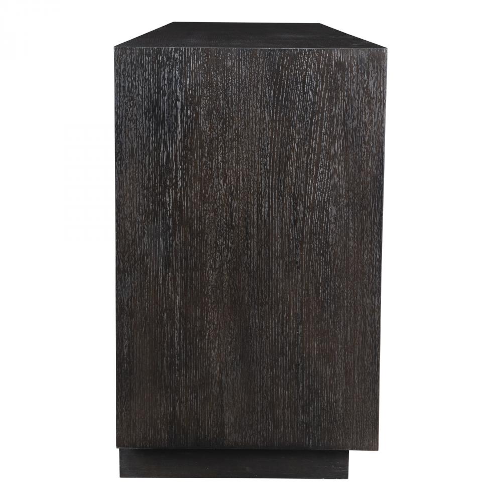 This Elegant Four-door Cabinet Beautifully Merges Contemporary Charm With Modern Sophistication. The Cabinet Showcases Both Beautiful Oak Grains In A Stunning Chevron Pattern And Brushed Gold Metal Door Pulls For A Touch Of Luxury.