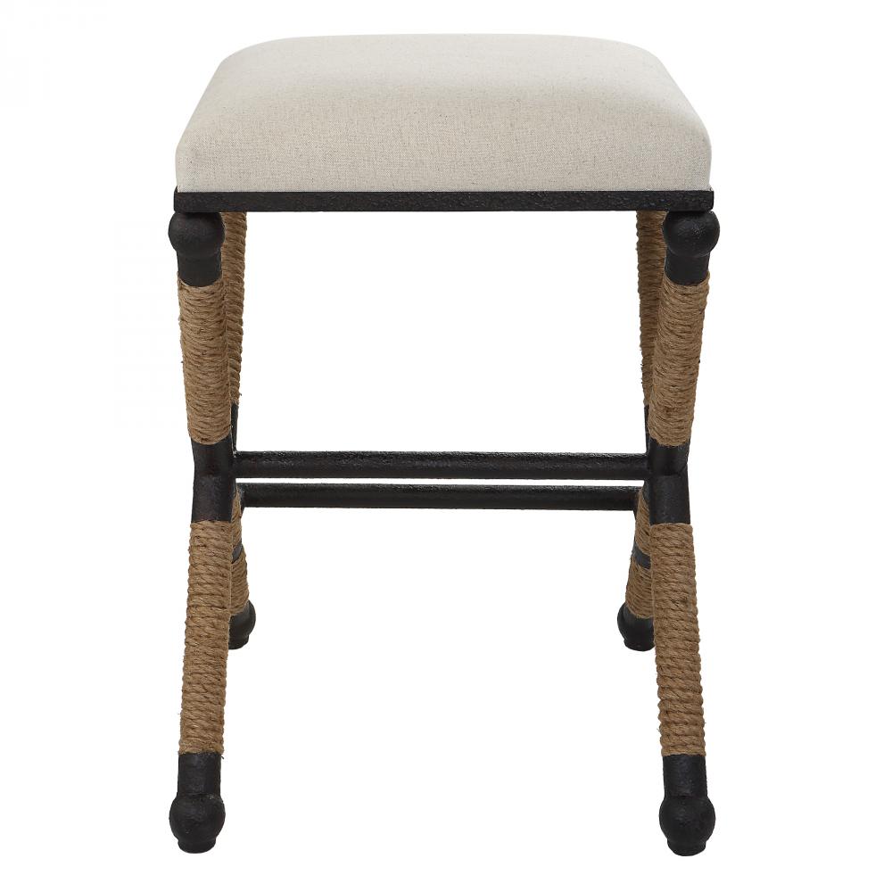 Rustic Iron Frame with A Nautical Touch, Wrapped in Natural Fiber Rope Accents. Cushioned Top is A Sturdy, Cotton in A Neutral Oatmeal with Performance Treatment. Seat Height is 28".