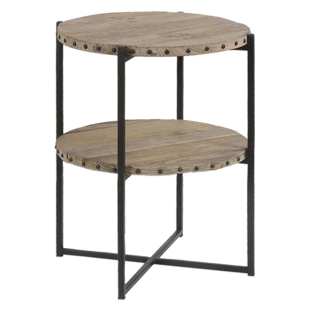 Double Layered Table Features Recycled Elm Wood Accented with Nail Details on An Iron Frame. Solid Wood Will Continue to Move with Temperature and Humidity Changes, Which Can Result in Small Cracks and Uneven Surfaces, Adding to Its Authenticity and Character.