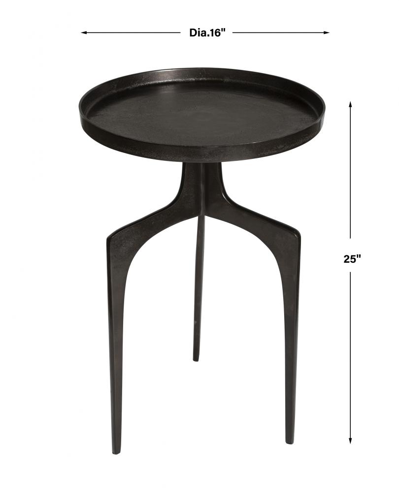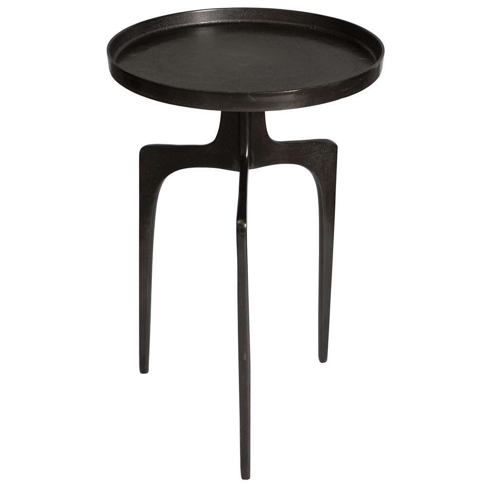 Providing An Organic Global Feel, This Cast Aluminum Accent Table Features A Shapely Curved Base and Round Top, Finished in A Plated Antique Bronze.