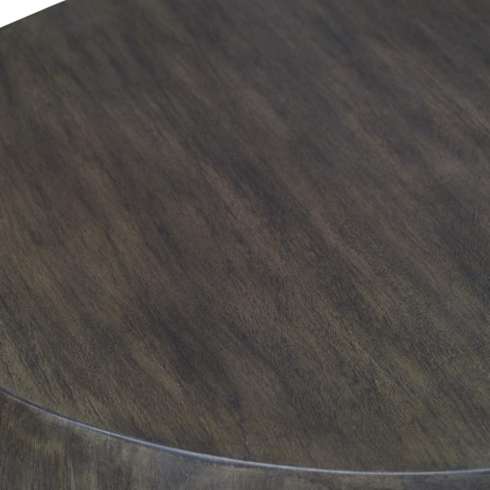 Showcasing A Minimalist Style, This Round End Table Features A Mango Wood Veneer Overlay in A Heavily Textured Aged Walnut Finish.