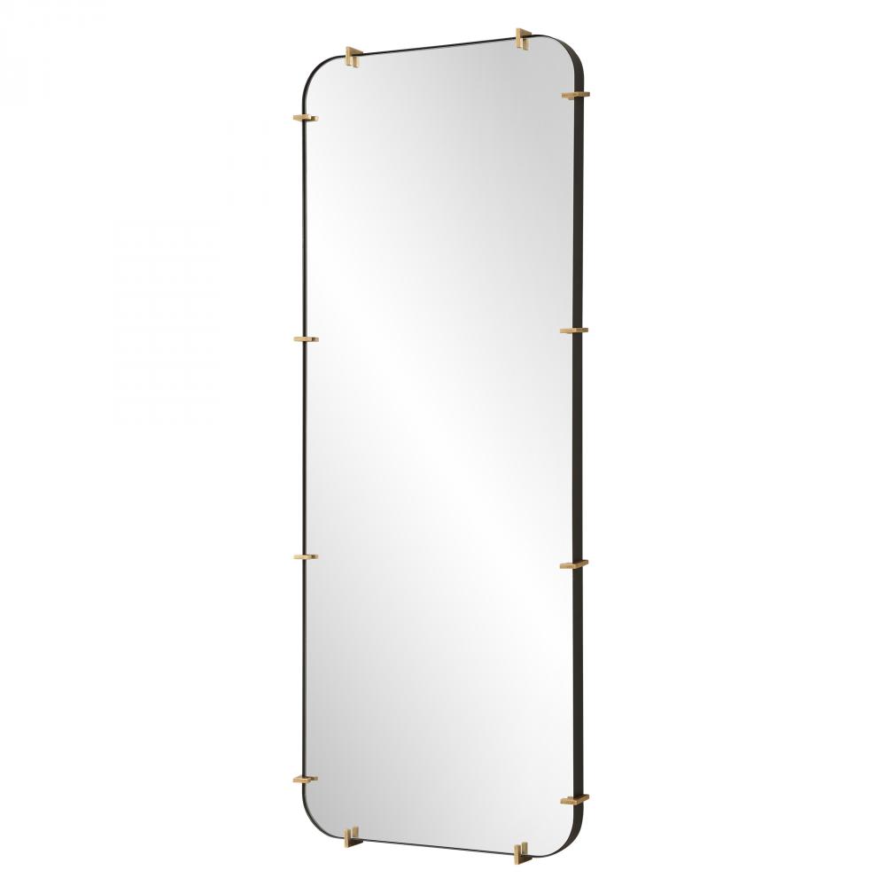 The Pali Dressing Mirror Successfully Pairs Contemporary And Industrial Styles With A Black Iron Strap Frame Accented By Lightly Antiqued Brushed Gold Details, Surrounding A Floating Polished Edge Mirror. May Be Hung Horizontal Or Vertical.