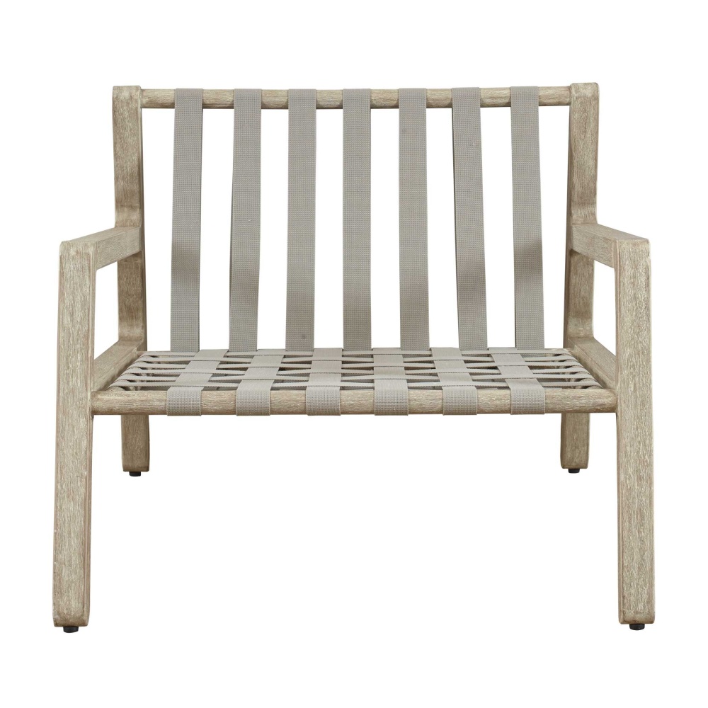 The Strapped Outdoor Lounge Chair Features A Casual, Laid Back Styling With A Mahogany Wood Frame In Cerused Wheat Accented With Taupe Back Straps Adding Function And Style. The Plush Cushions Are Upholstered In An Ivory Rattan Textured Sunbrella Solution Dyed Acrylic.