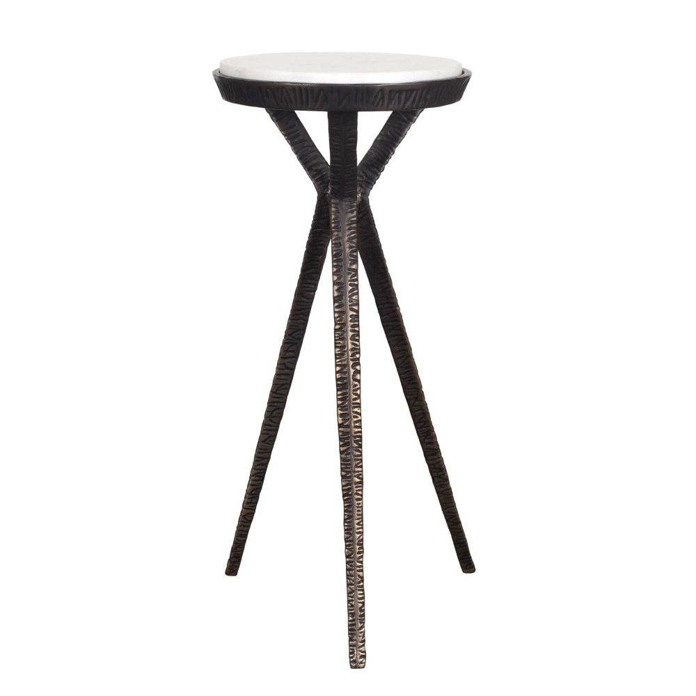 The Tilton Accent Table Features A Striking Geometric Aluminum Base With A Hand-forged Chiseled Texture, Finished In A Worn, Dark Bronze. The Tabletop Is Adorned With A Captivating White Marble Slab With Gray Veining. Due To The Nature Of Natural Stone, Every Piece Will Vary Slightly Ensuring Yours Is Unique.