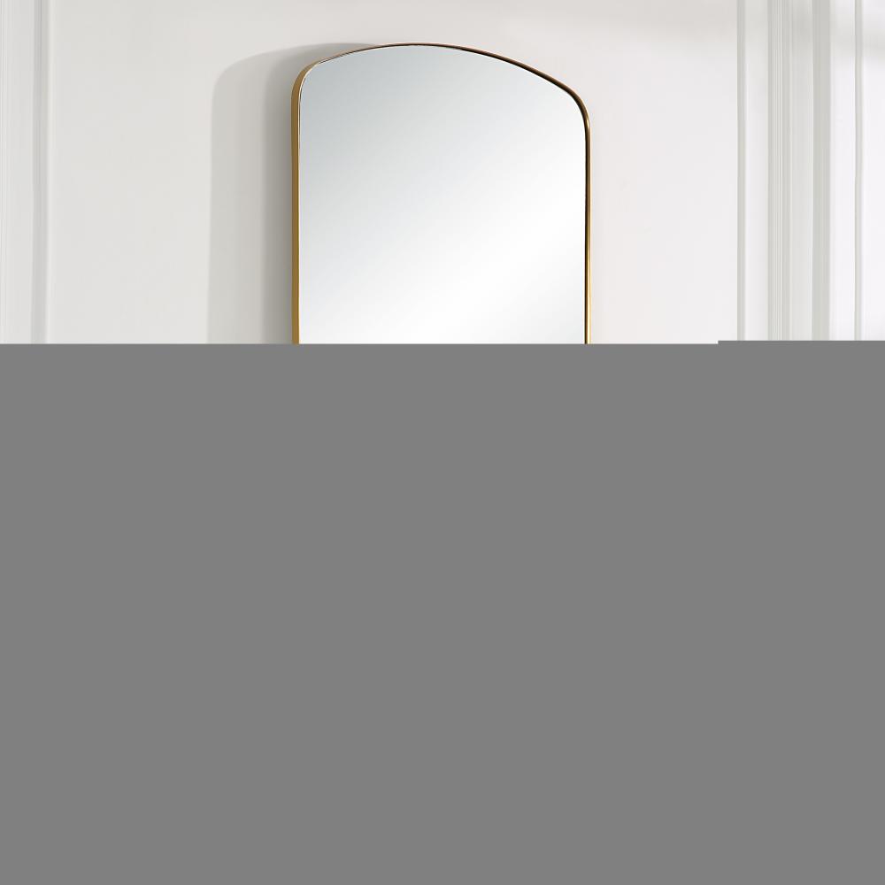 Crafted with A Sleek Stainless Steel Frame, The Tordera Arch Mirror Features A Brass Plated Finish That Surrounds A Floating Polished Edge Mirror.