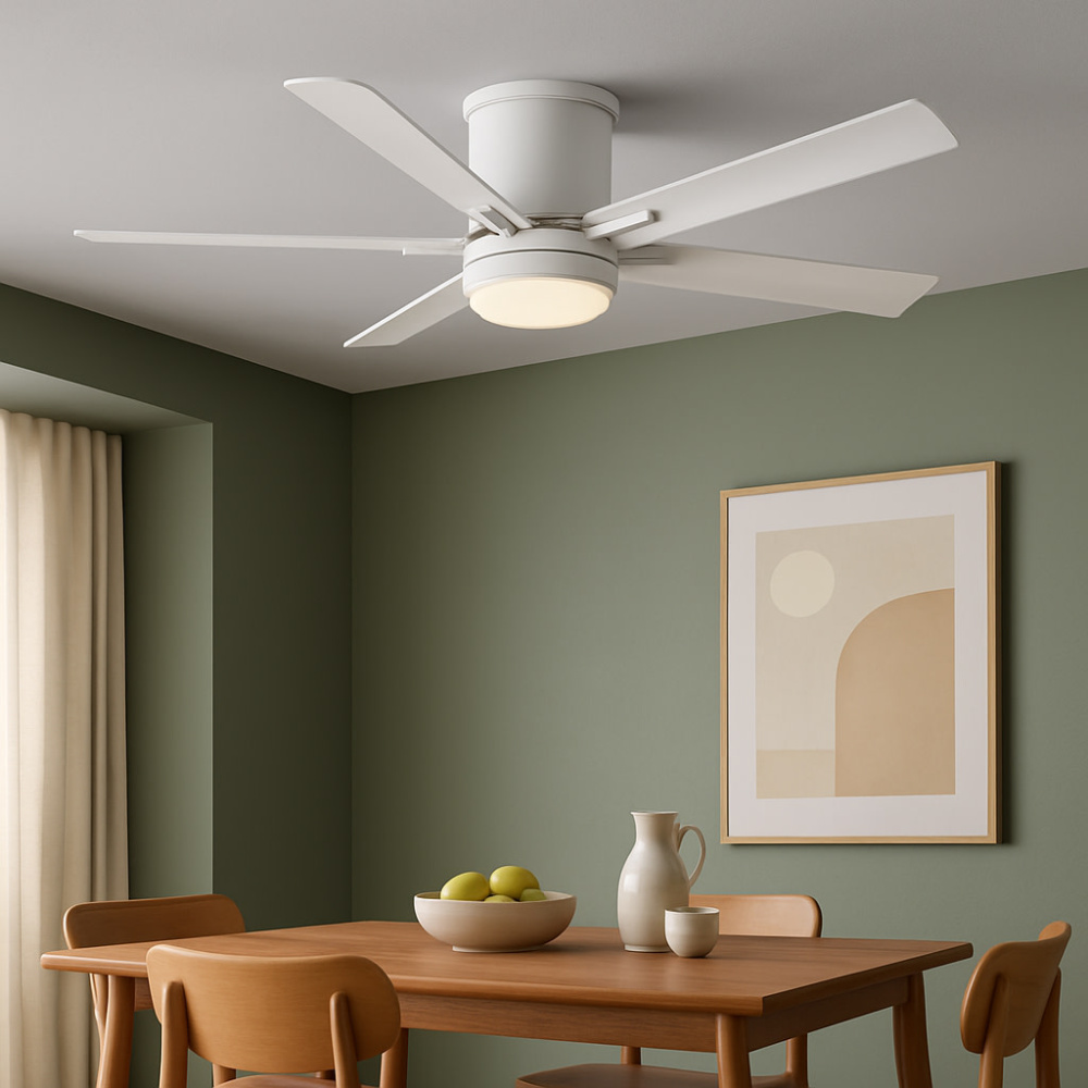 Vail Flush offers a transitional design with gently curved blades and an array of finish options, while its integrated LED lighting and DC motor technology deliver excellent energy efficiency. Vail Flush is so versatile; it can be used for both indoor and outdoor spaces. Blades are included with every fan.