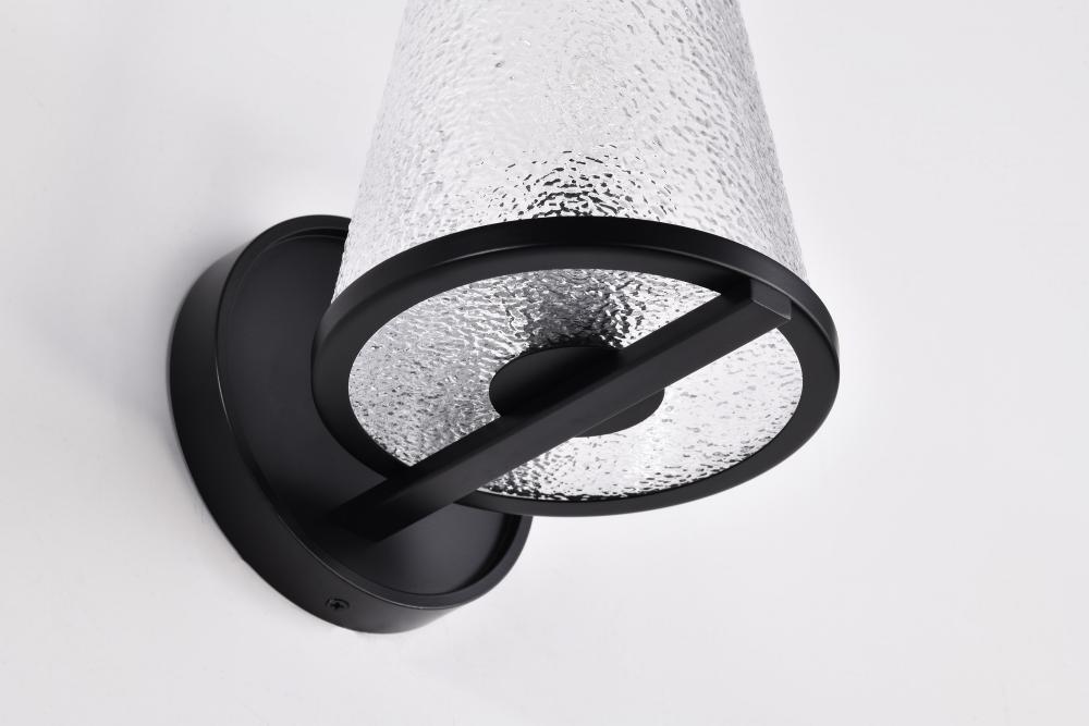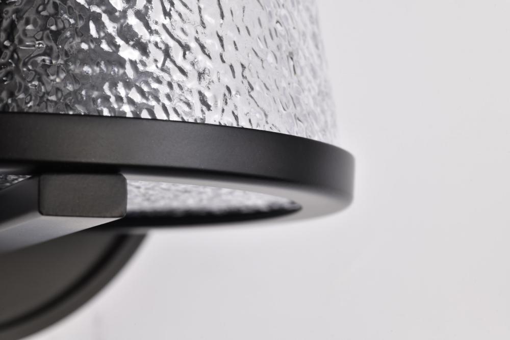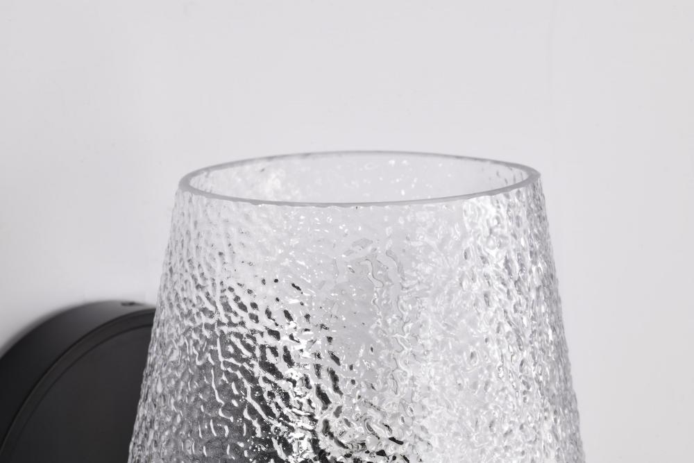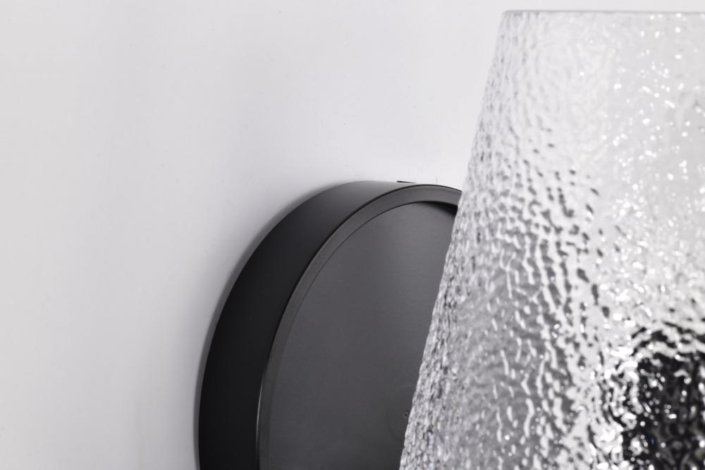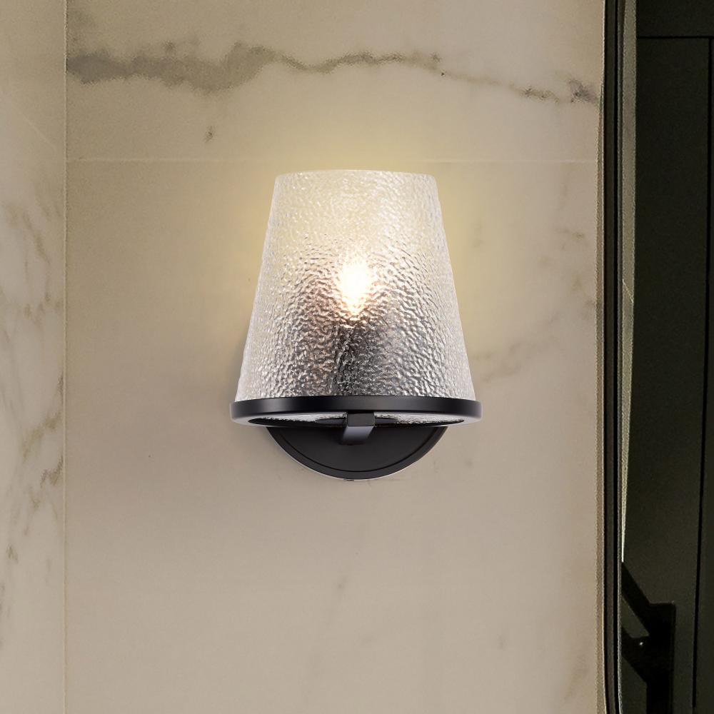 Valentine; 1 Light Vanity; Black Finish; Hammered Glass