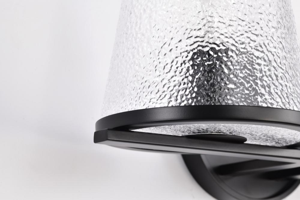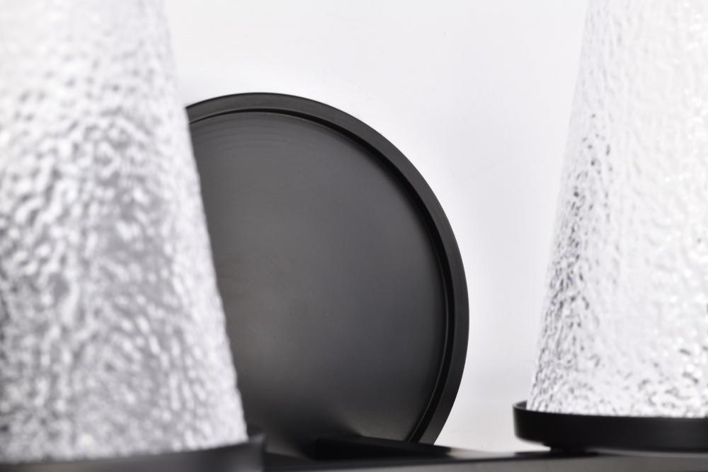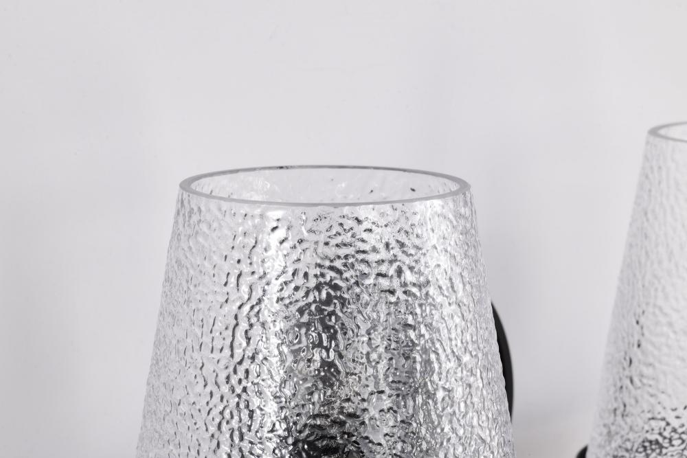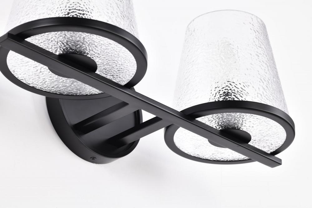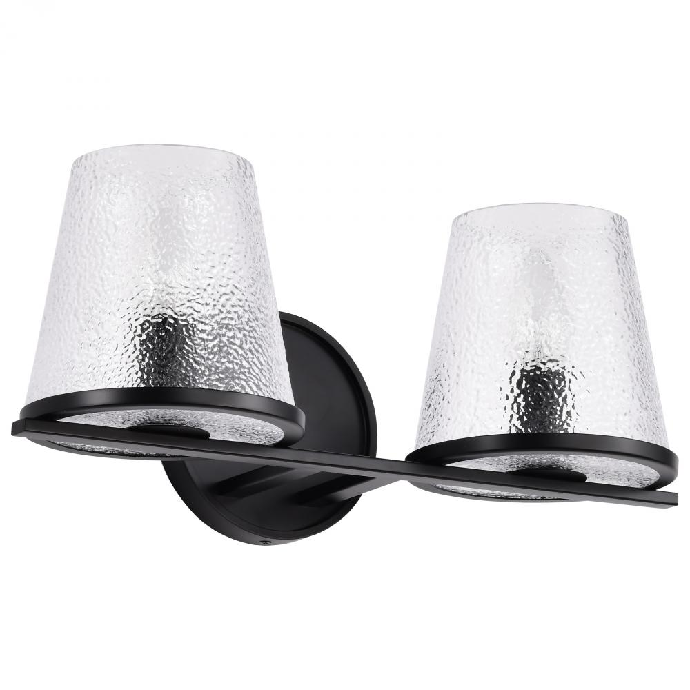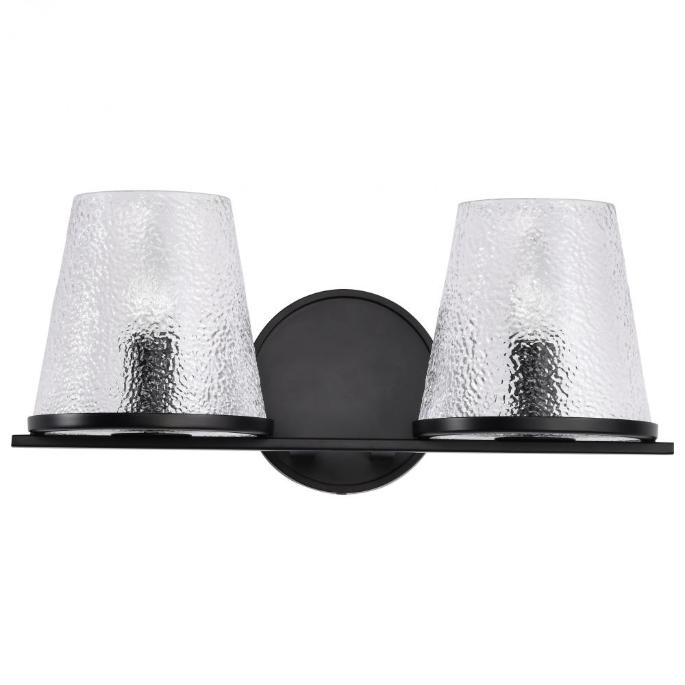 Valentine; 2 Light Vanity; Black Finish; Hammered Glass