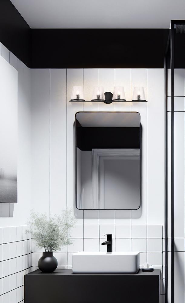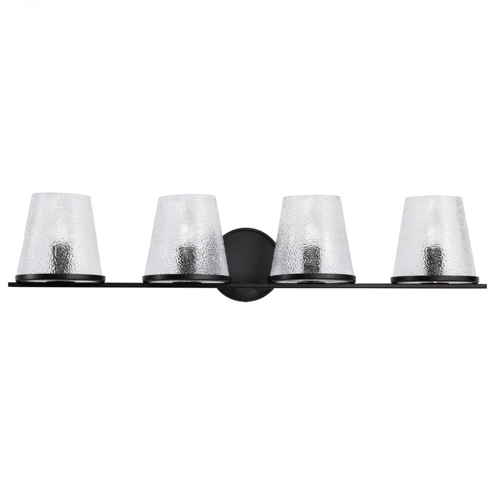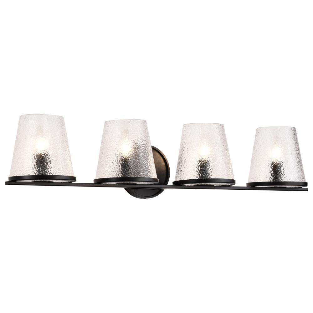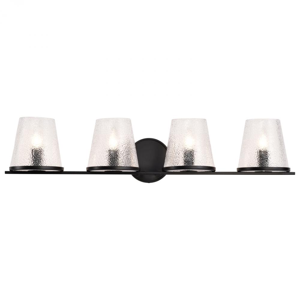 Valentine; 4 Light Vanity; Black Finish; Hammered Glass