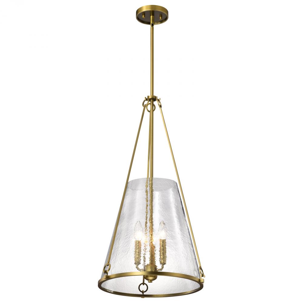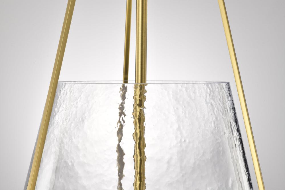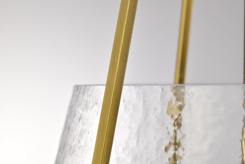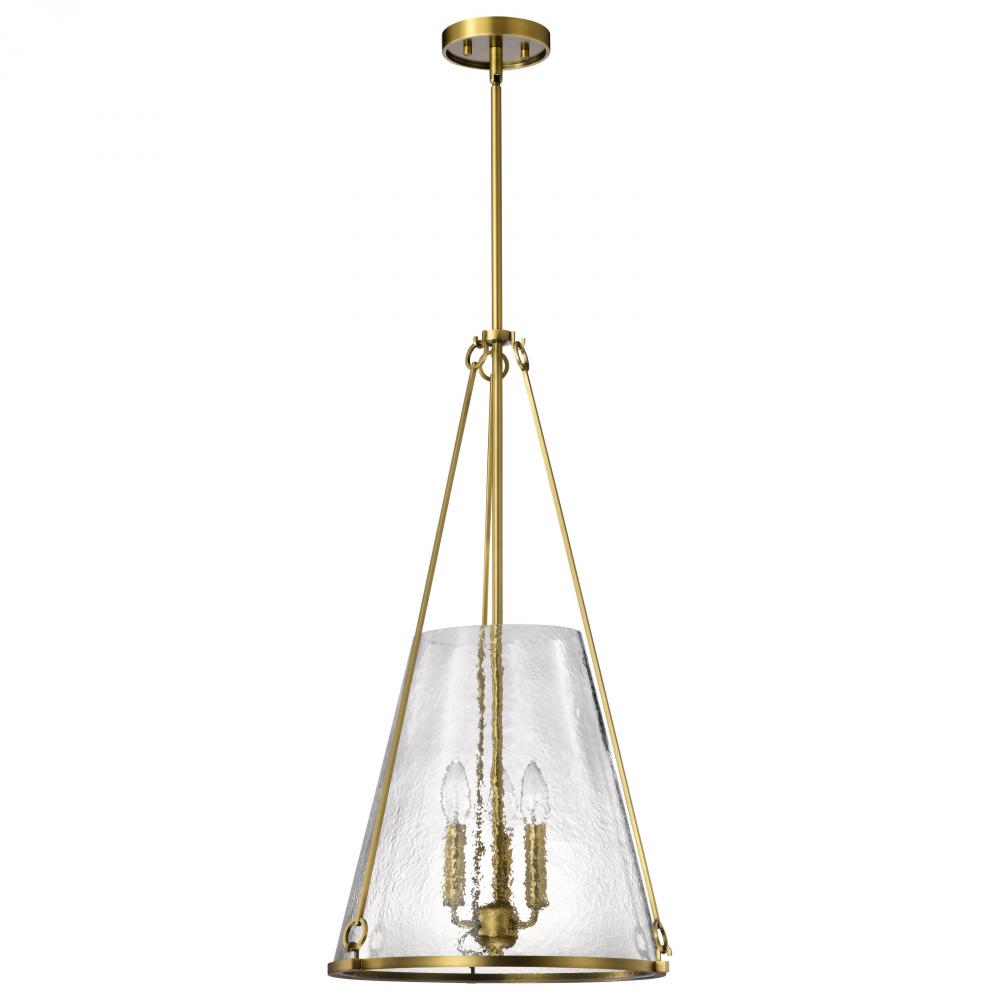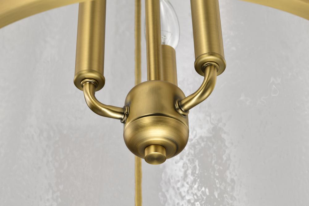 Valentine; Large Pendant; Vintage Brass Finish; Hammered Glass
