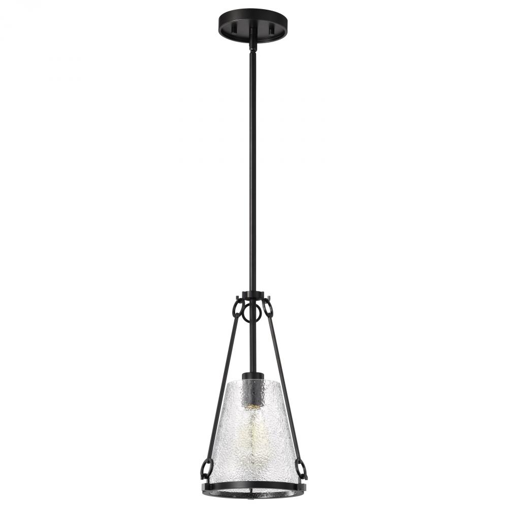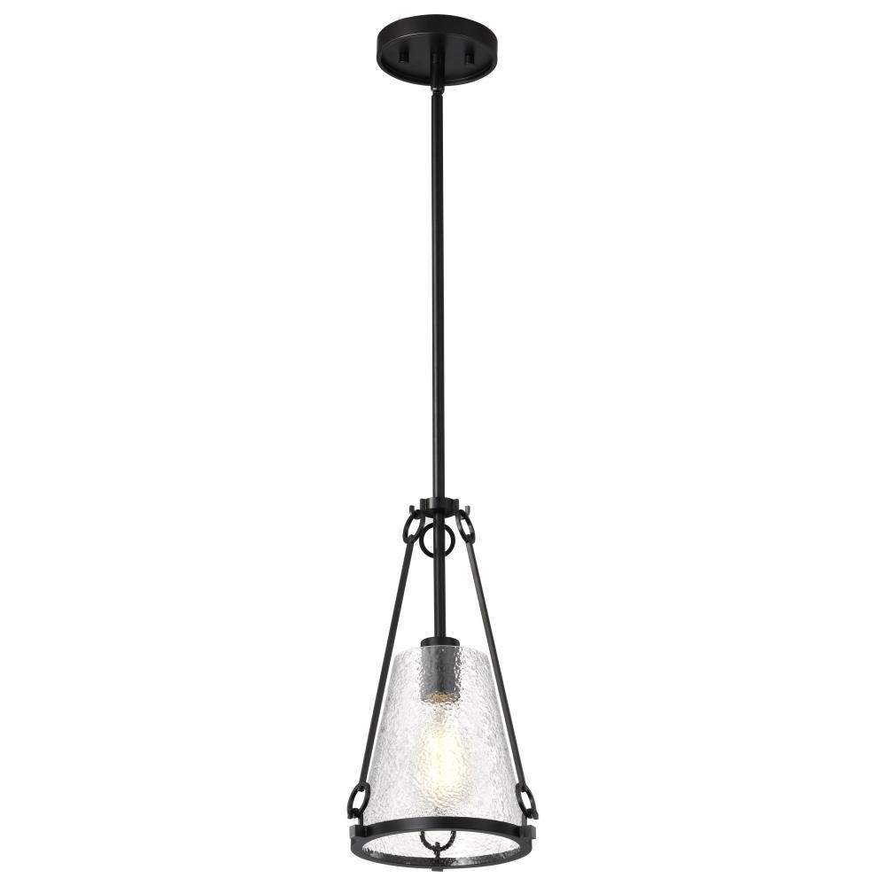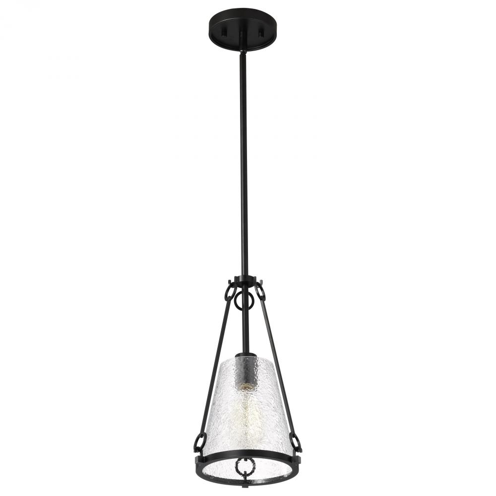 Valentine; Small Pendant; Black Finish; Hammered Glass