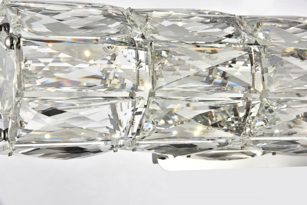 Valetta wall sconces dress up a bathroom, office, or bedroom without overwhelming the surrounding décor. This collection features an octagonal tube-shaped stainless-steel frame covered almost entirely with shining rectangular royal-cut clear crystals. Faceted crystal octagonal crystals cover both ends as a charming finishing touch. The chrome-finished backplate is polished to a mirror shine and reflects the glittering crystals for additional sparkle. A sleek chrome finish completes this modern look. Available in four size options.
