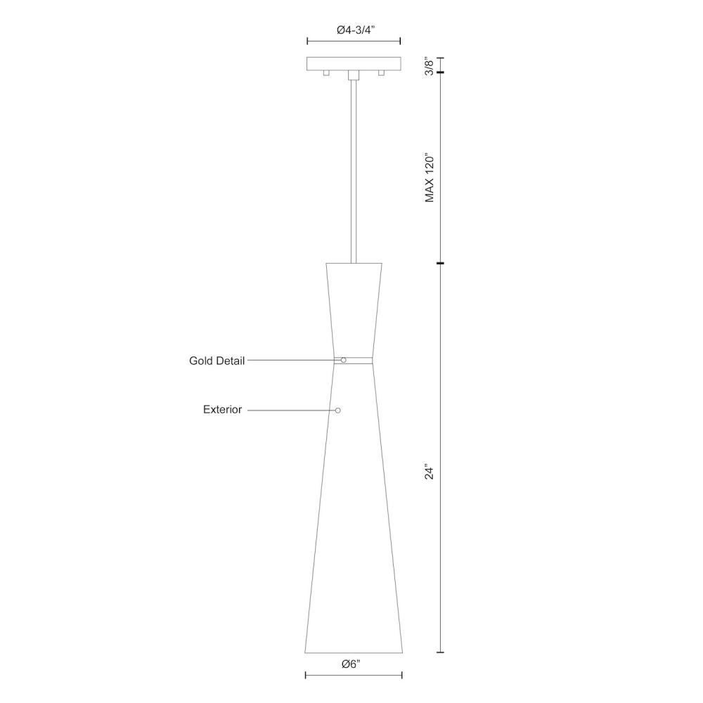 Single-lamp pendant with conical aluminum shade with fine powder-coated finishes and anodized gold ring detail. Exterior shade colors are white or black, with matte white interior. Suspended by cloth cable