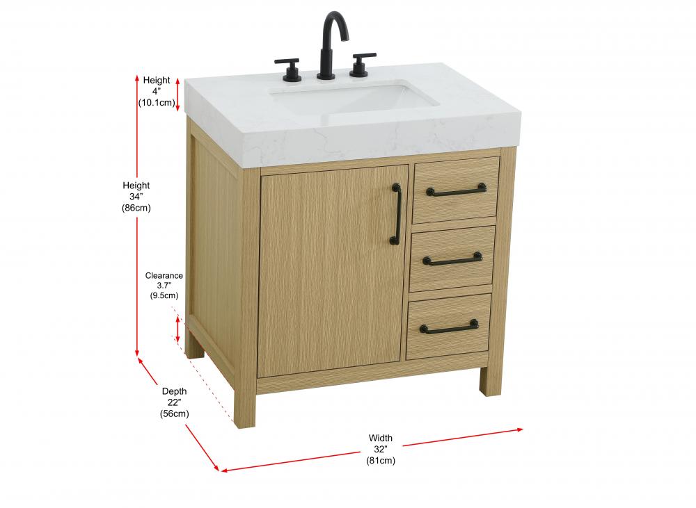 Vanity Cabinet 1DR 3DW 32"W x 22"D x 34"H Honey Brown