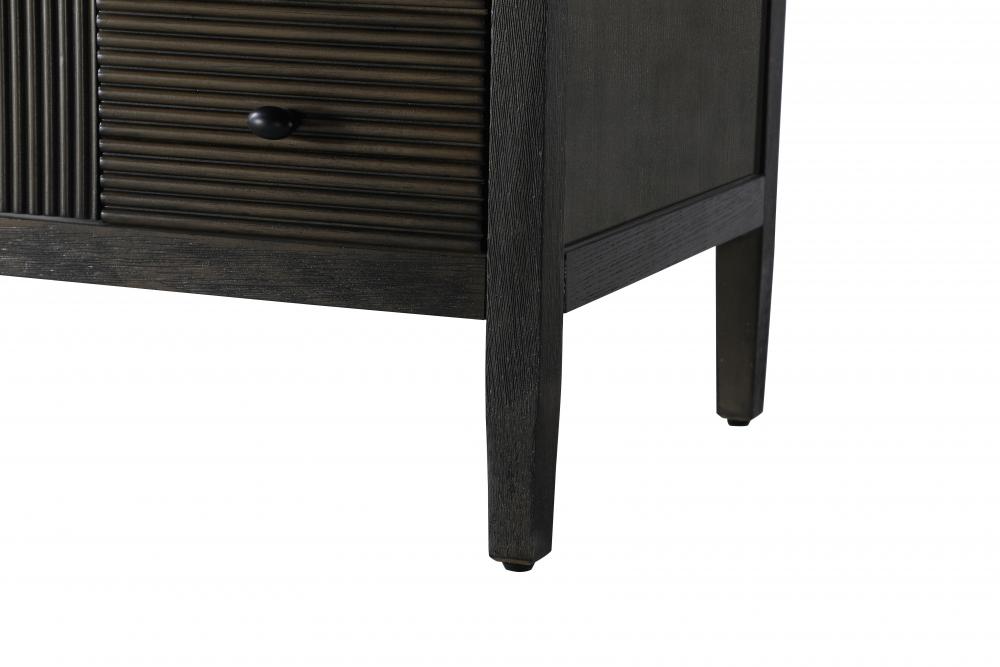 The textured fluted design on the door and drawer panels adds visual interest and elegance, creating a balance of classic charm and contemporary style.
