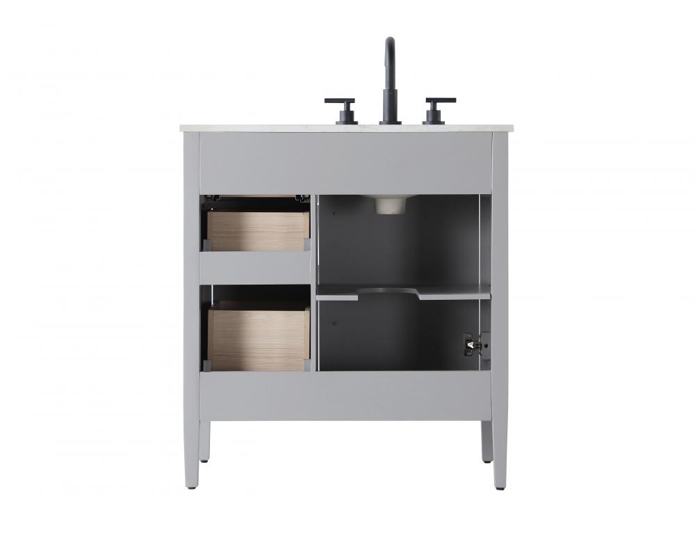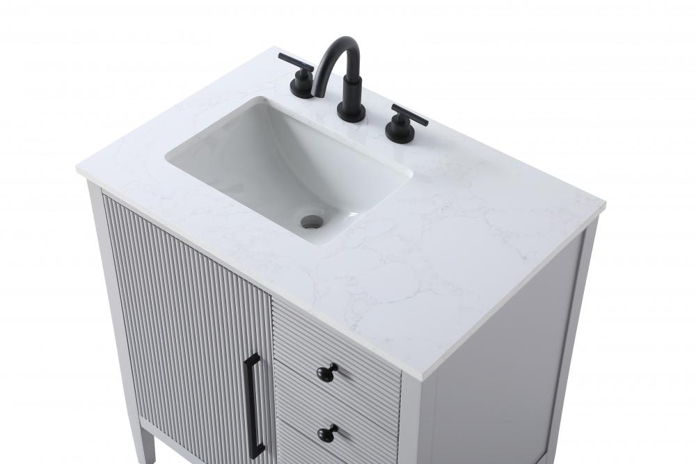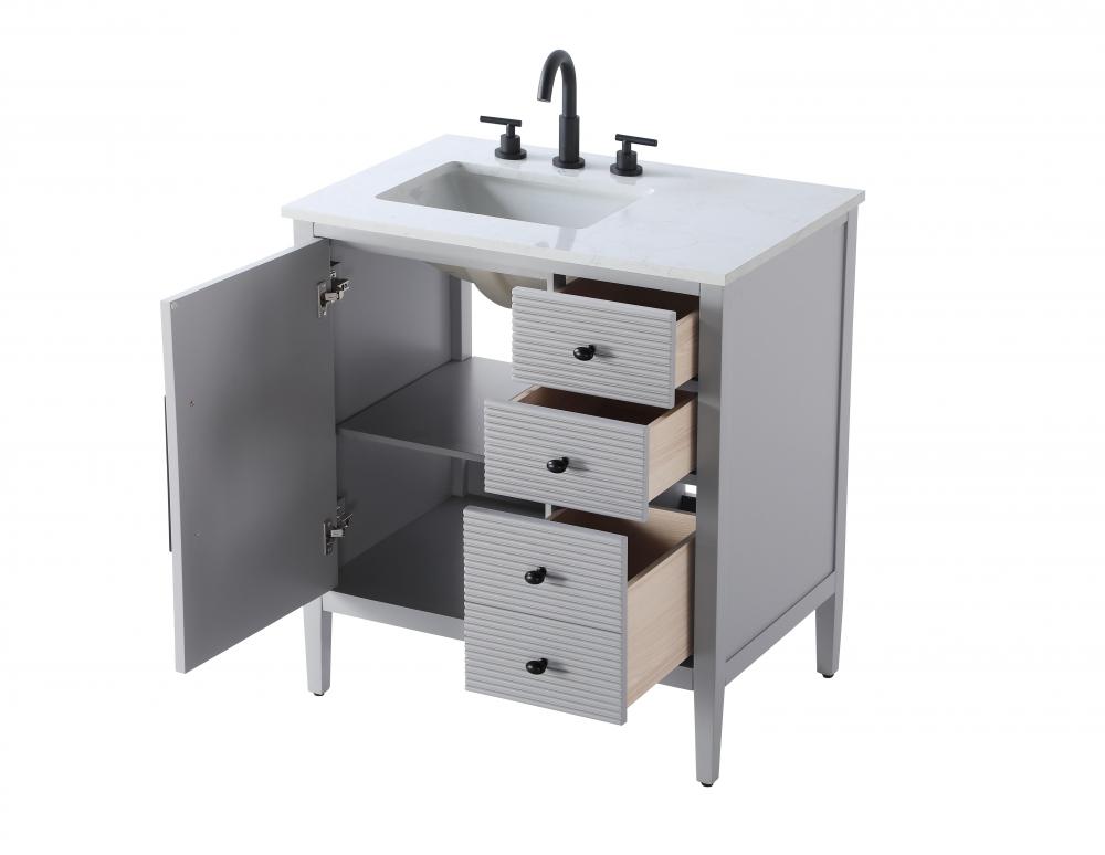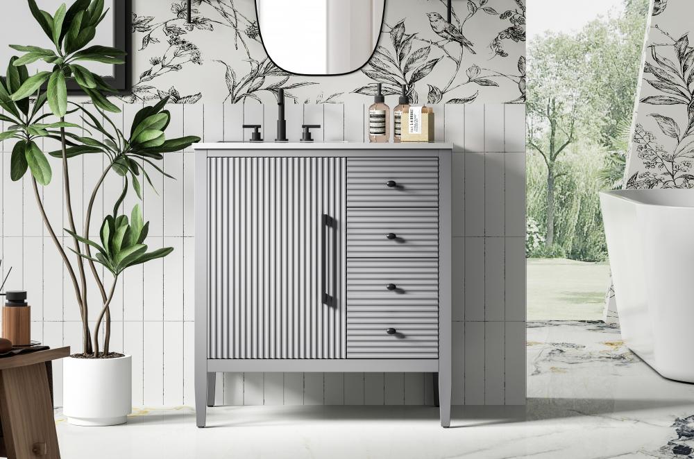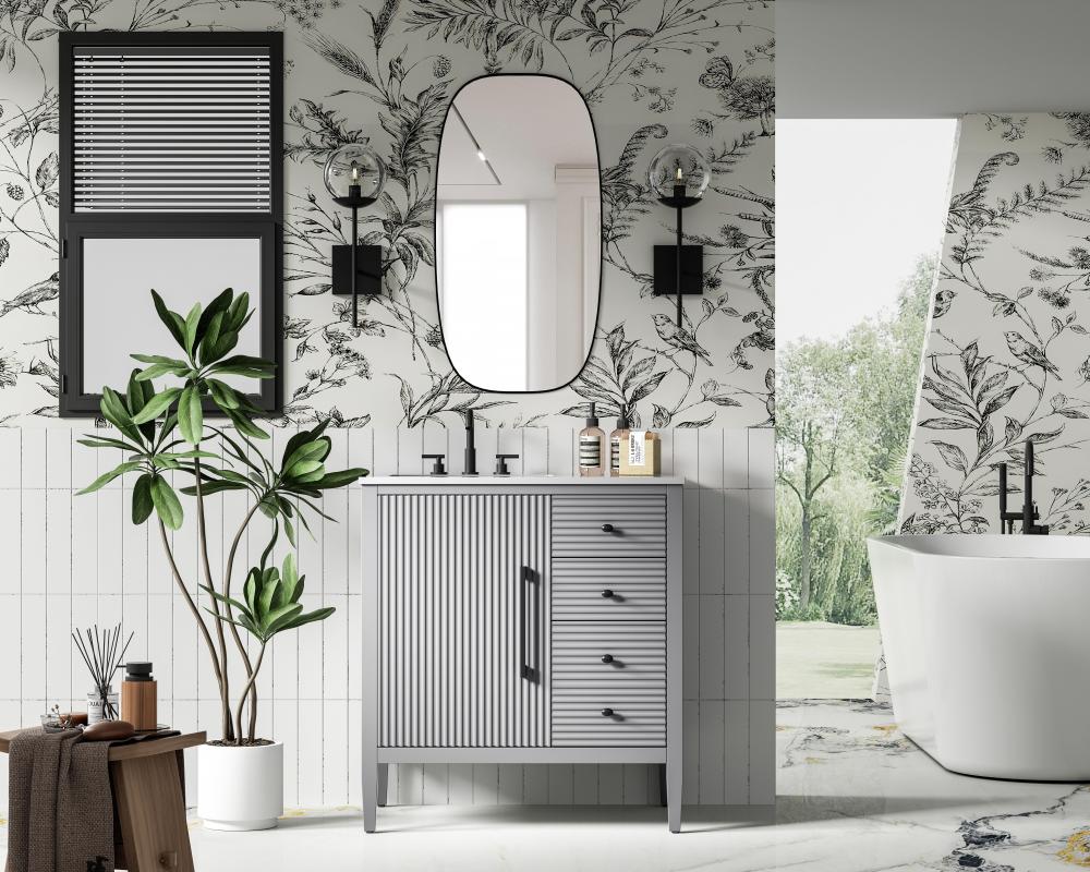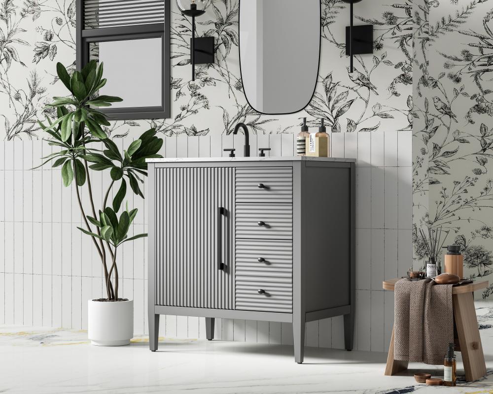 Designed with transitional elegance in mind, this bathroom vanity seamlessly blends traditional elements with modern functionality. Available in five stunning finishes, from the clean sophistication of Crisp White to the natural warmth of Honey Oak, the fluted door and drawer panels add subtle texture and charm. The white engineered marble countertop with natural veining exudes luxury, while the soft-closing doors and drawers with sleek black metal pulls offer a quiet, refined experience. Practicality is never compromised, with features like the U-shaped shelf for plumbing, deeper bottom drawer for ample storage, and pre-drilled faucet holes for easy customization. Whether your style leans modern or classic, this vanity is the perfect balance of beauty and function, appealing to customers with a taste for quality and style.