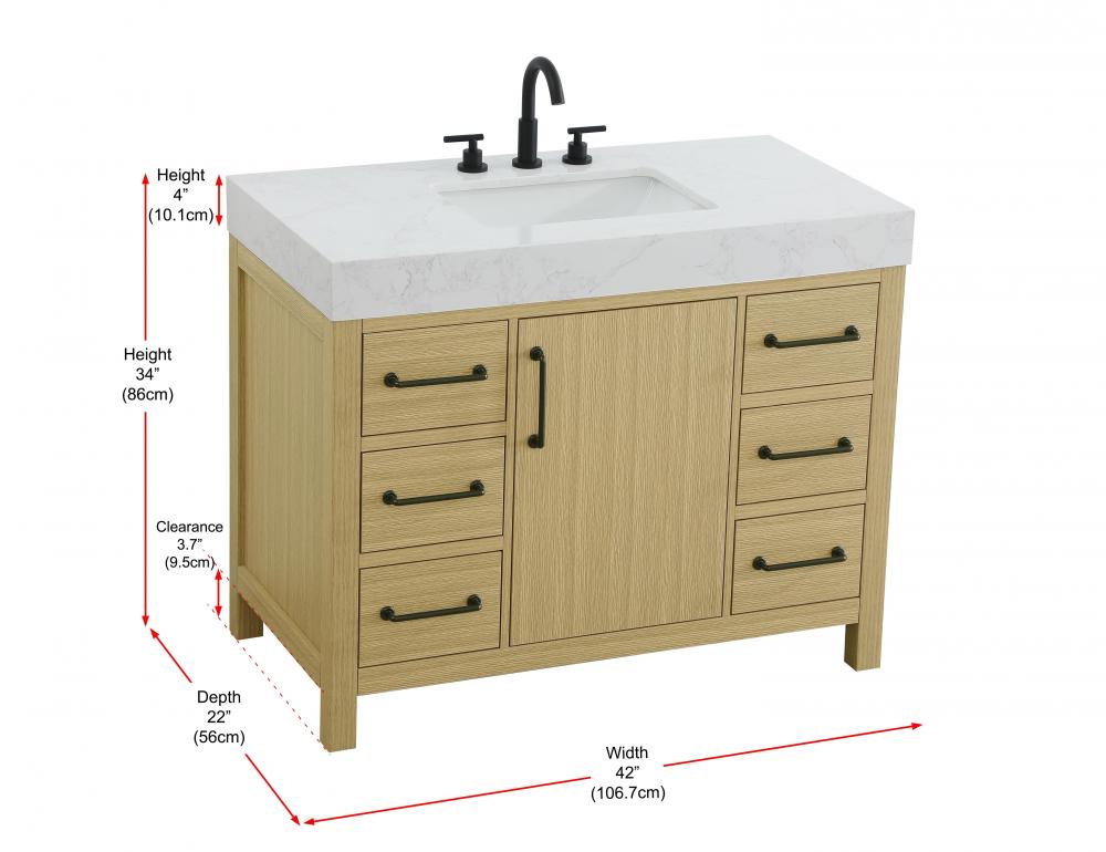 Vanity Cabinet 1DR 6DW 42"W x 22"D x 34"H Honey Brown