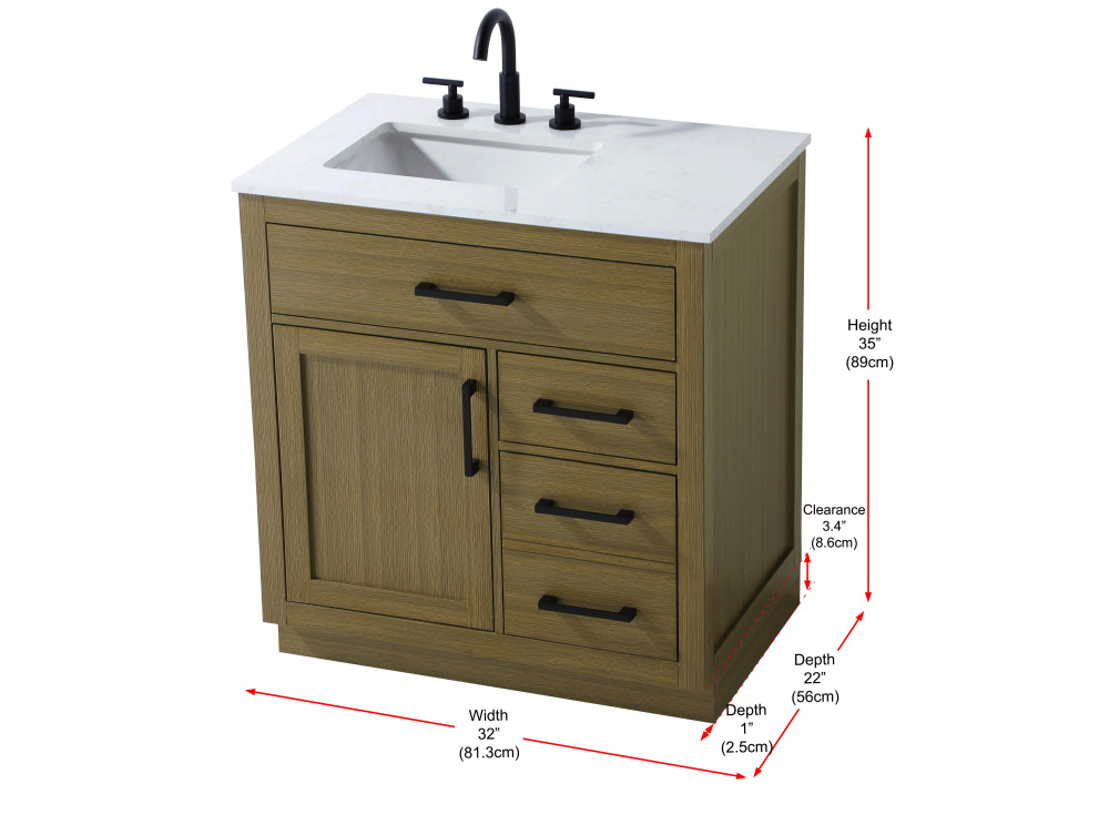 Vanity Cabinet 1Dr3Dw 32"W x 22"D x 35''H Chestnut Brown