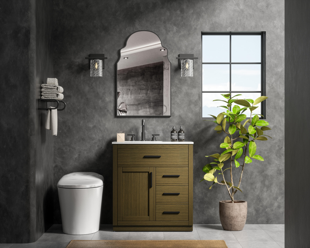 Perfectly suited for transitional and contemporary bathroom designs, this vanity seamlessly blends rustic and modern elements while being crafted from solid wood and MDF for exceptional durability and strength.