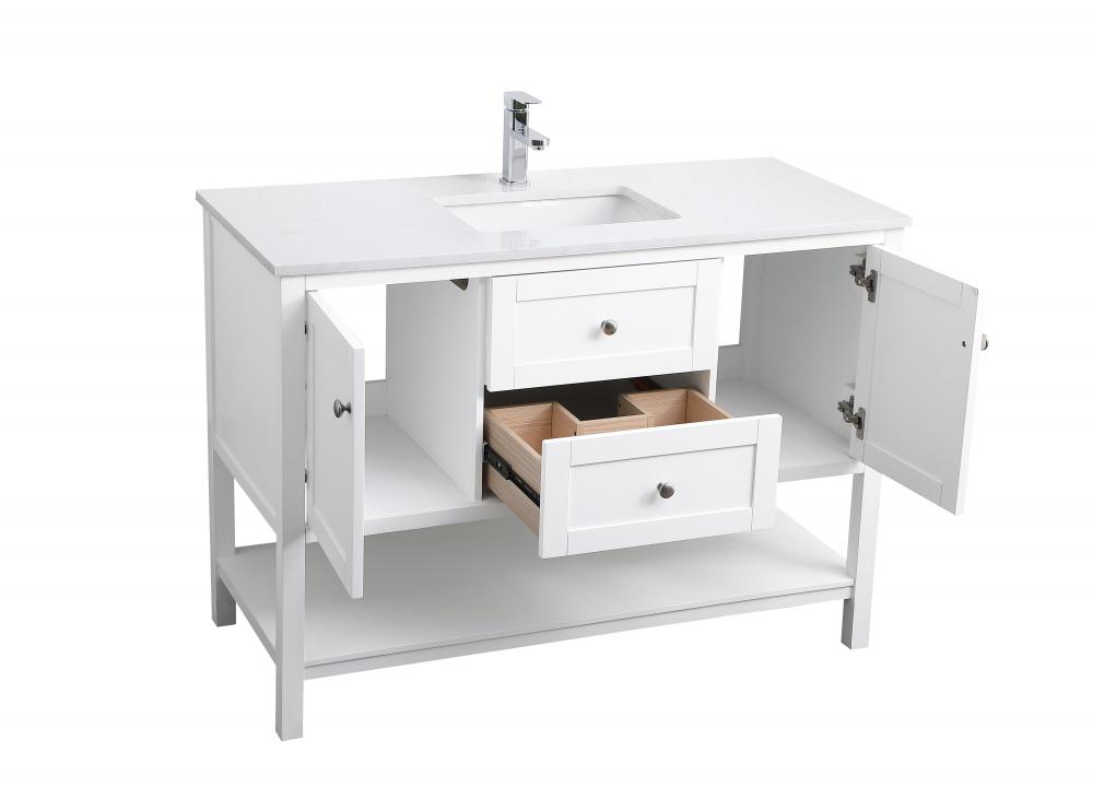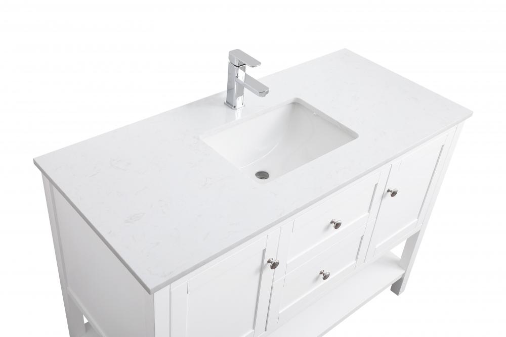 Displaying a chic straight edge cut and crafted with precision, our vanity boasts an engineered marble top that adds a dash of modern elegance to your space.